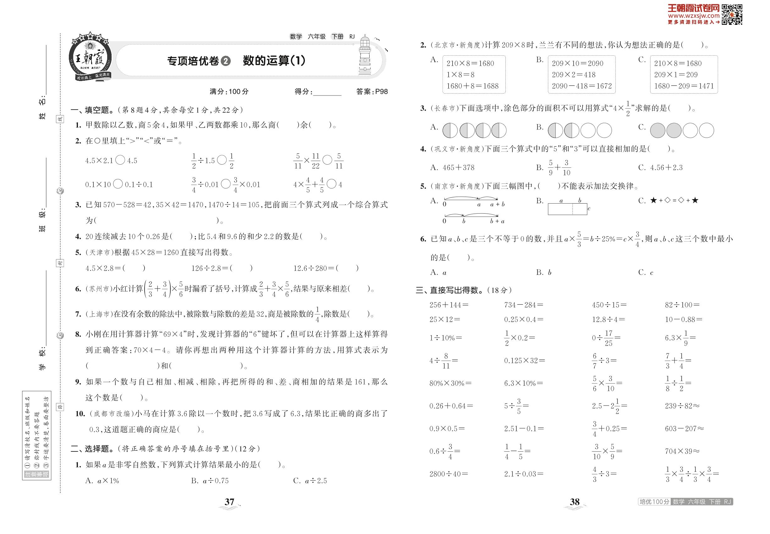 2023下册六年级数学人教版 专项培优卷2 数的运算(1)