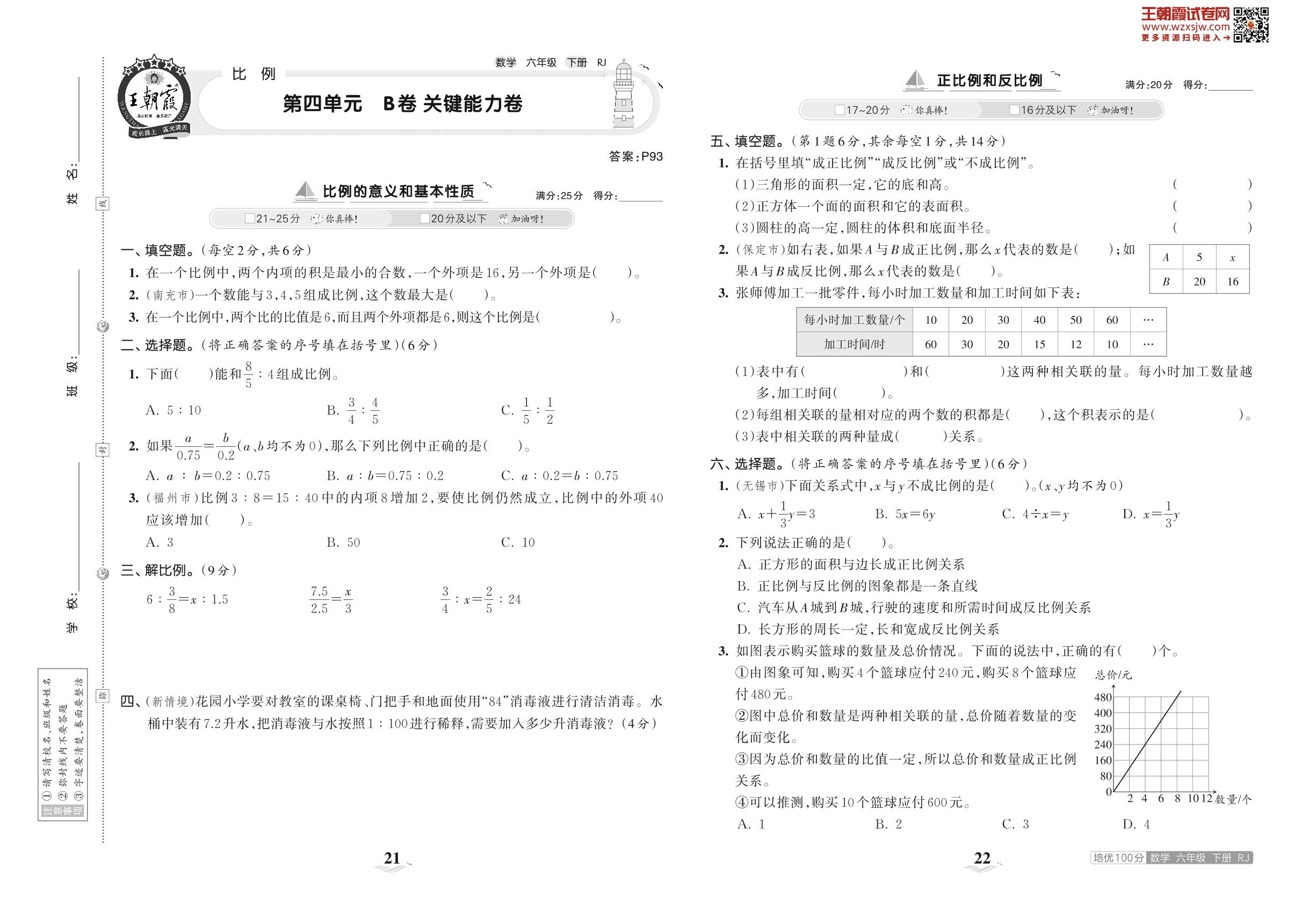 2023下册六年级数学人教版 第四单元 B卷 关键能力卷