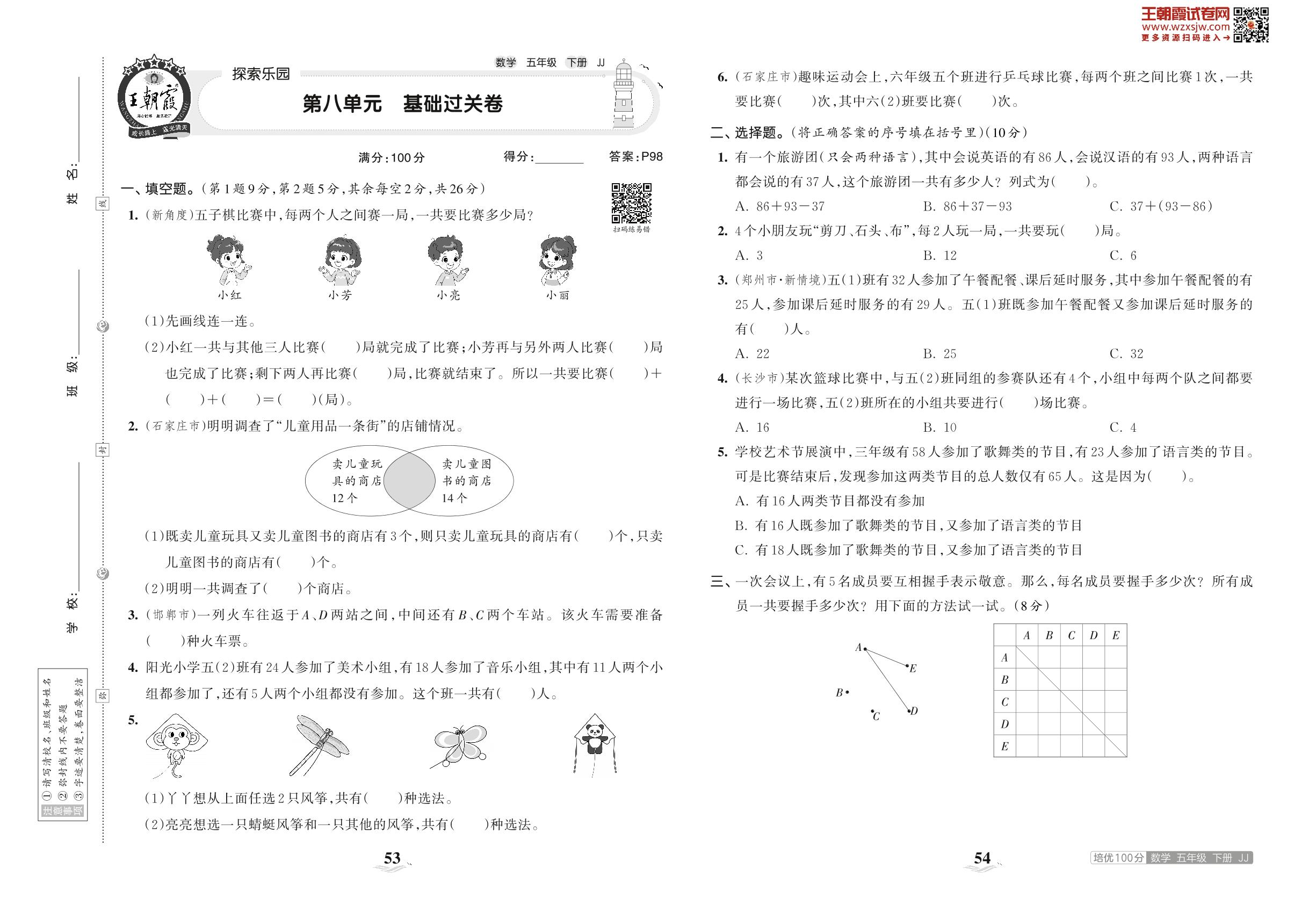 2023下册五年级数学冀教版 第八单元 基础过关卷