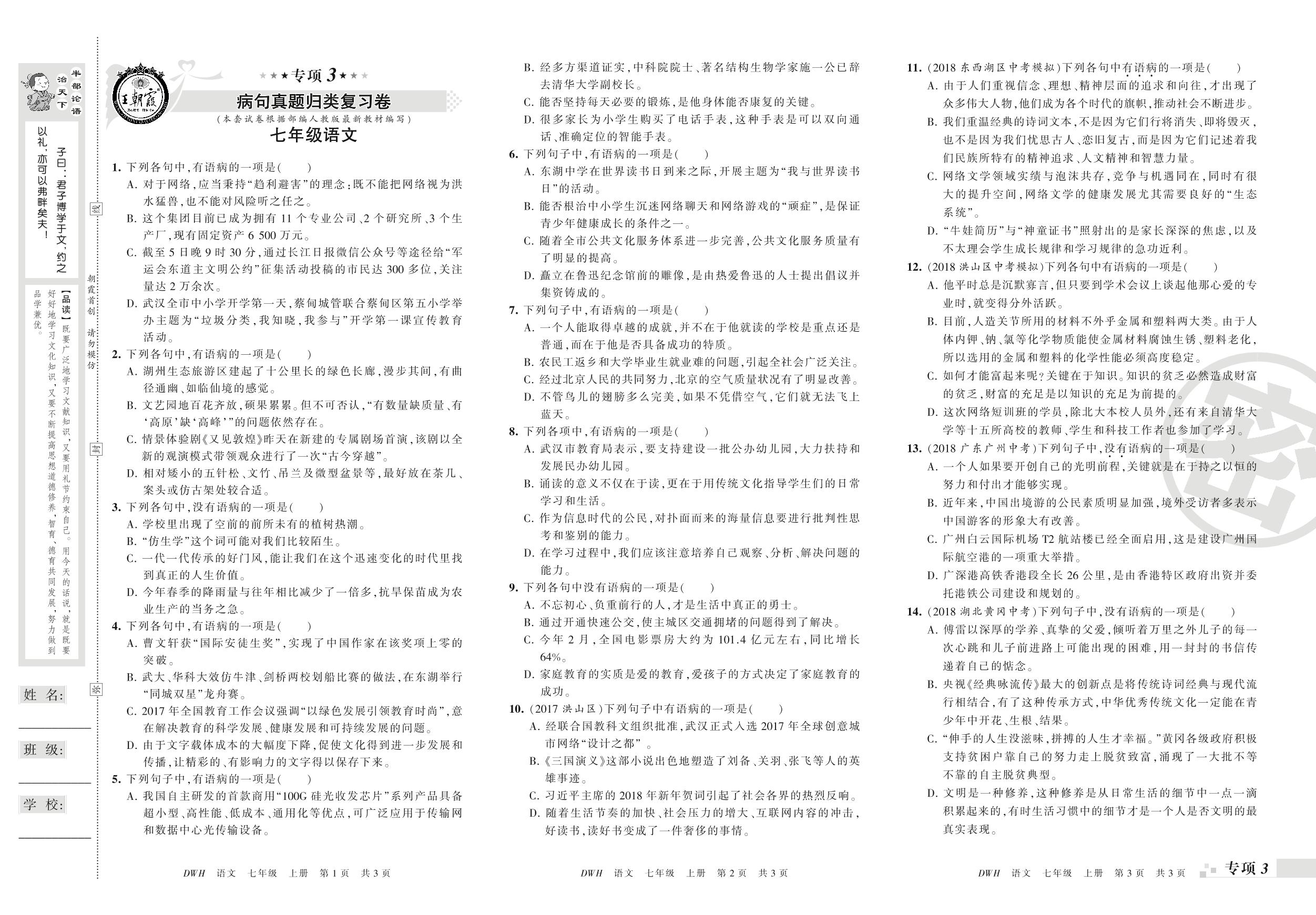 王朝霞期末专项卷——病句、语文知识与标点符号真题归类复习卷七年级上册语文(人教版)_R210802162905【0】