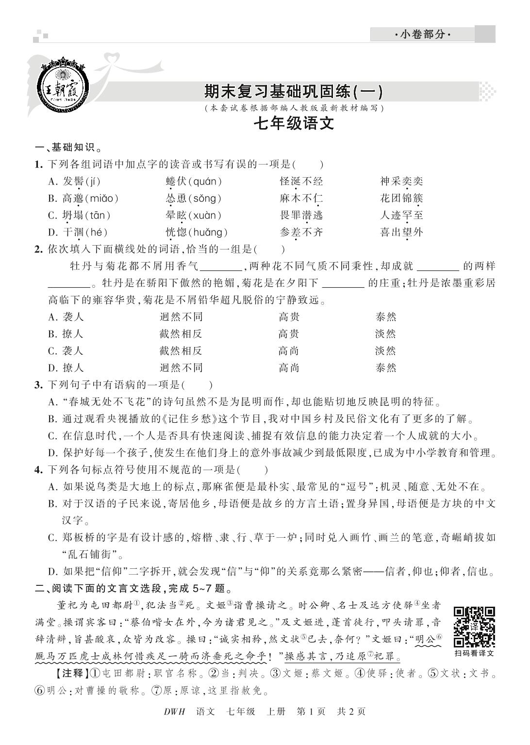 王朝霞期末小卷——期末复习基础巩固练七年级上册语文(人教版)_R210802163200【0】