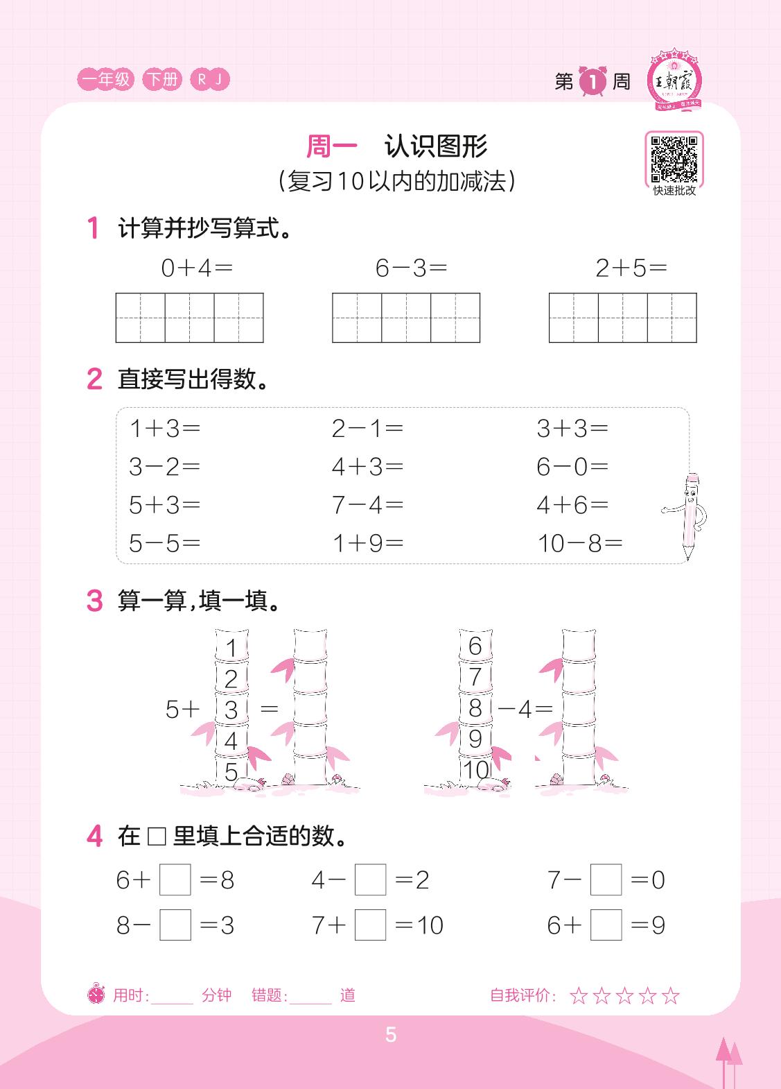 2023下册一年级数学人教版 第1周 周一