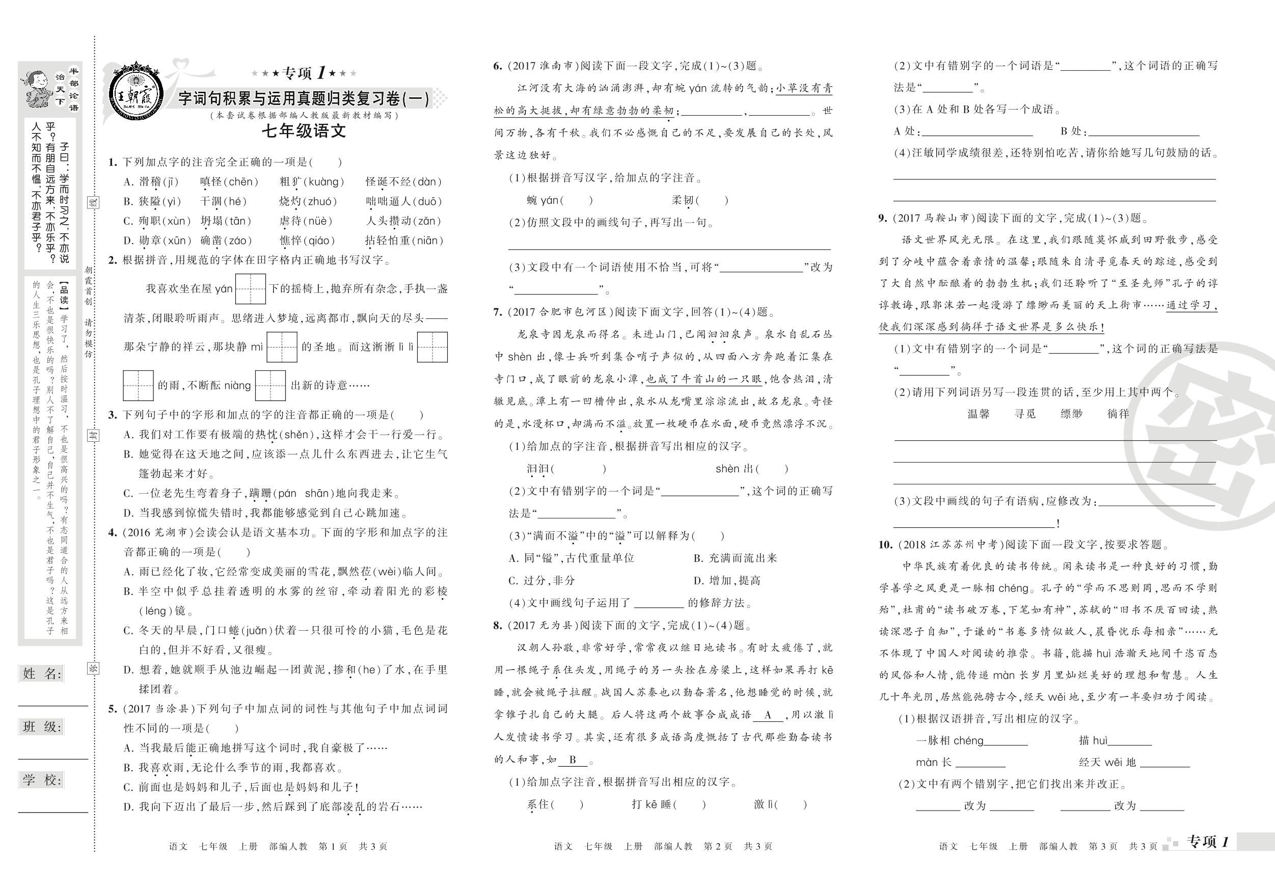 王朝霞期末专项卷——字词句积累与运用(一)(二)真题归类复习卷七年级上册语文(人教版)_R210802163218【0】