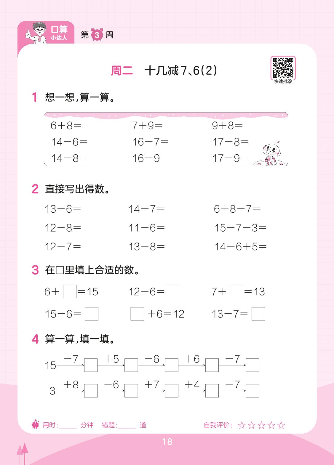 2023下册一年级数学人教版 第3周 周二
