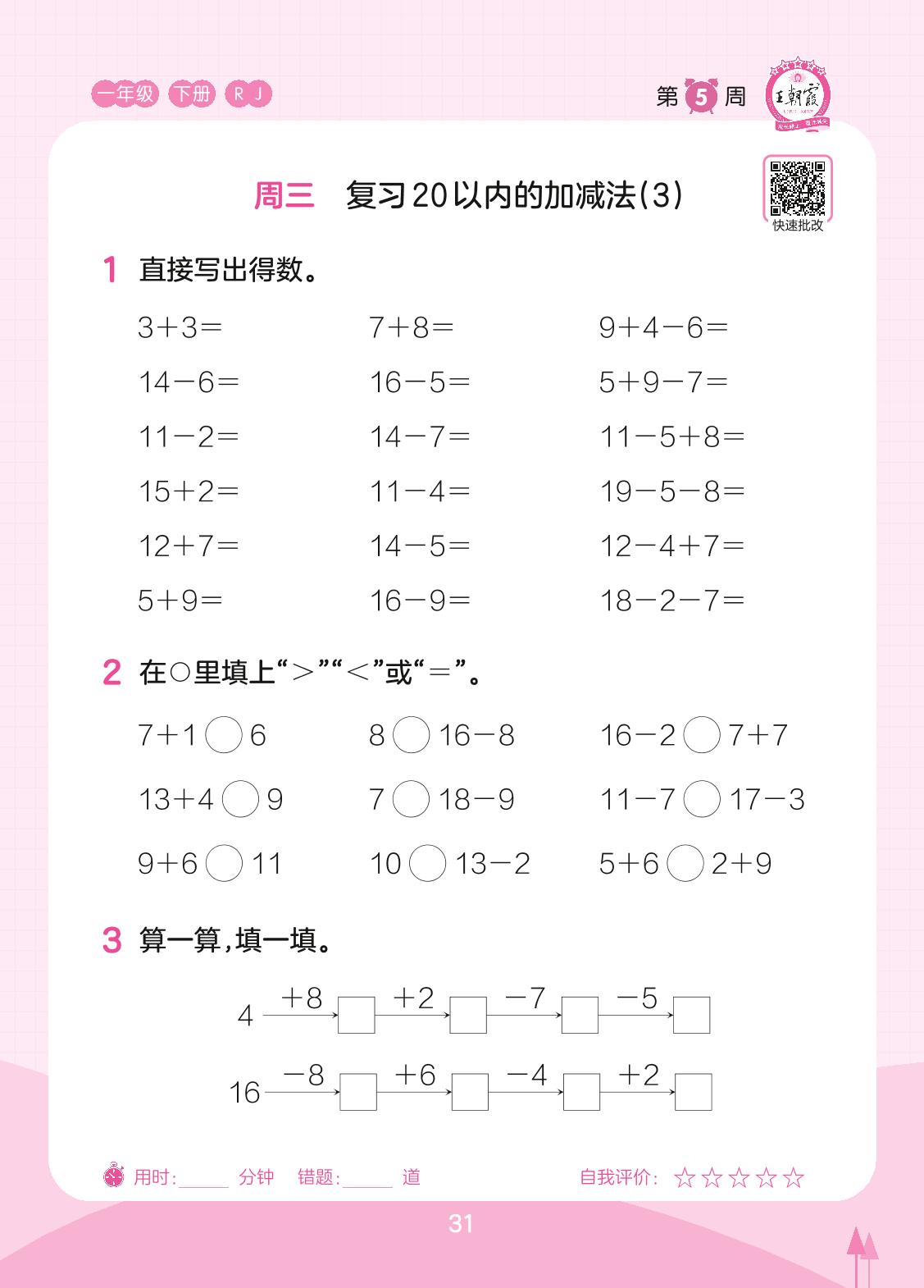 2023下册一年级数学人教版 第5周 周三