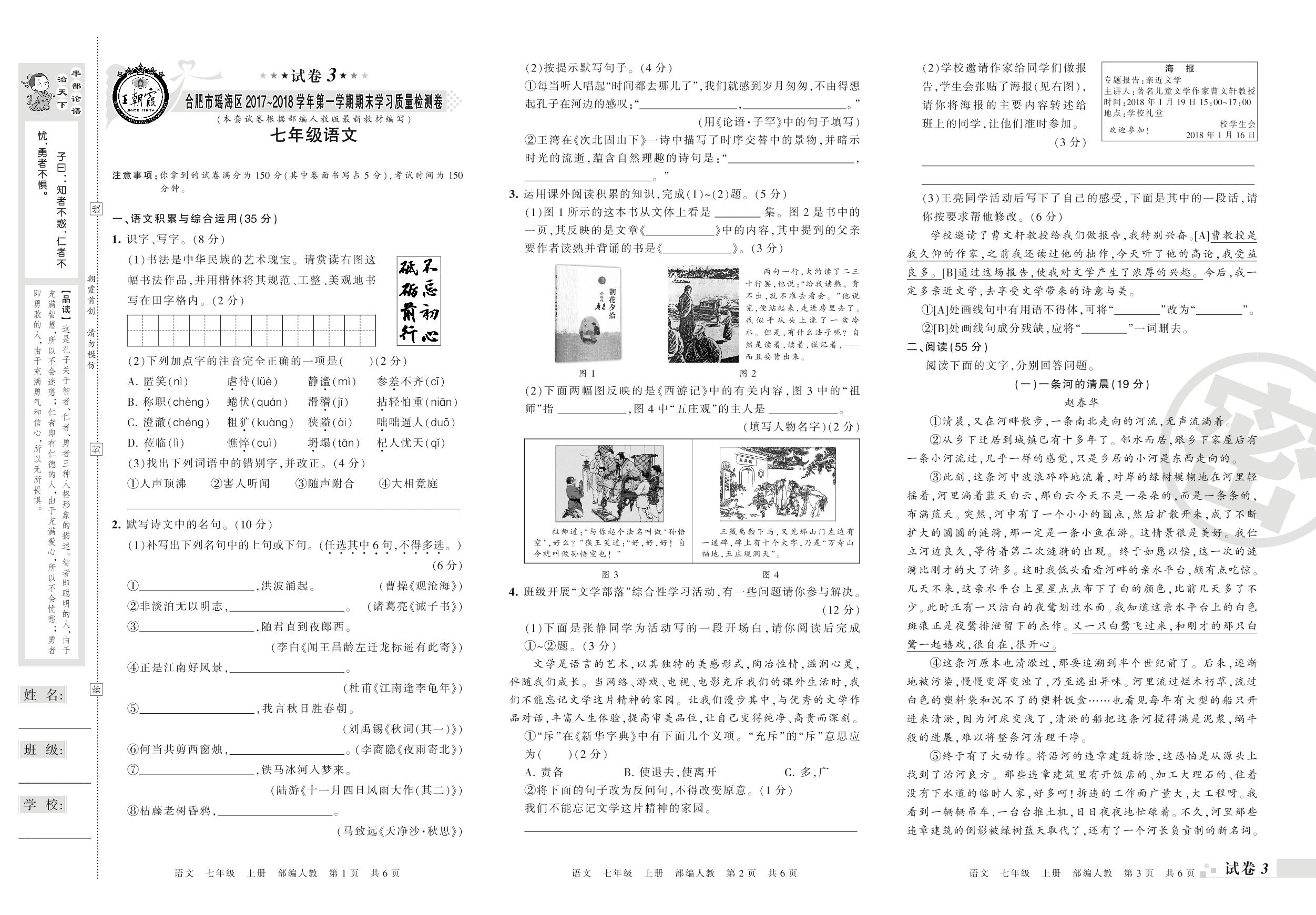 2017-2018学年第一学期合肥市瑶海区七年级语文试卷(人教版)【3】
