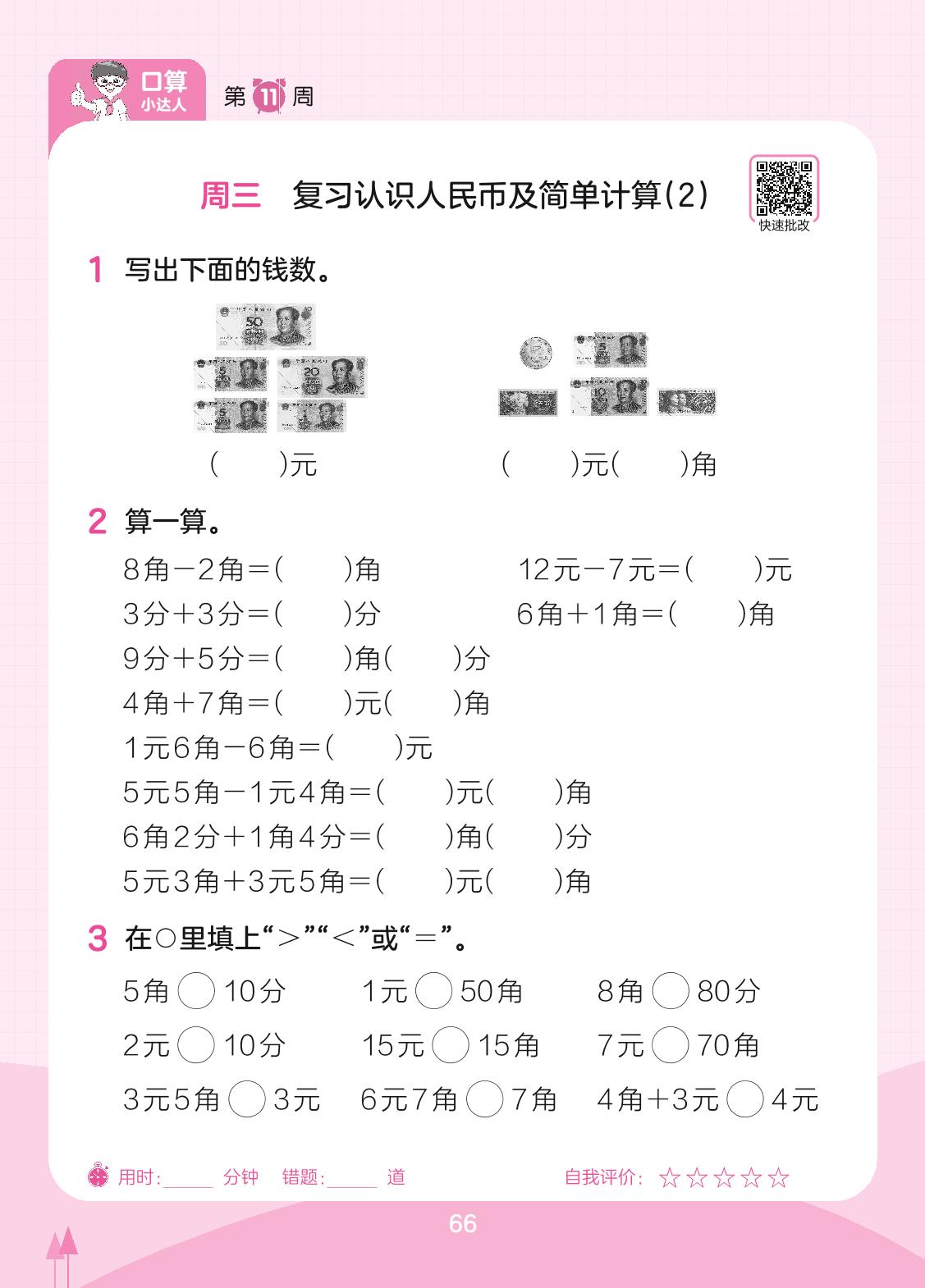 2023下册一年级数学人教版 第11周 周三