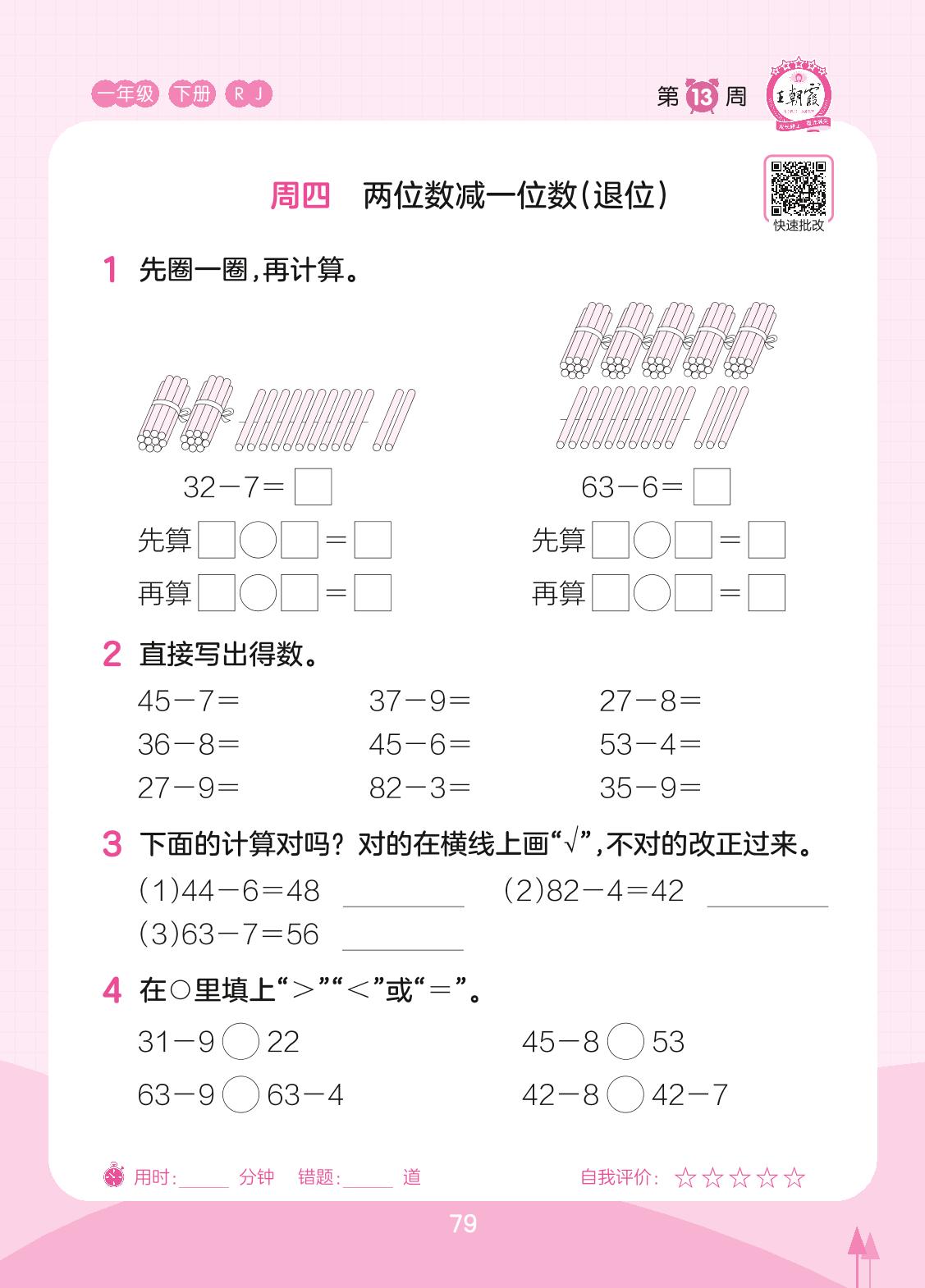 2023下册一年级数学人教版 第13周 周四