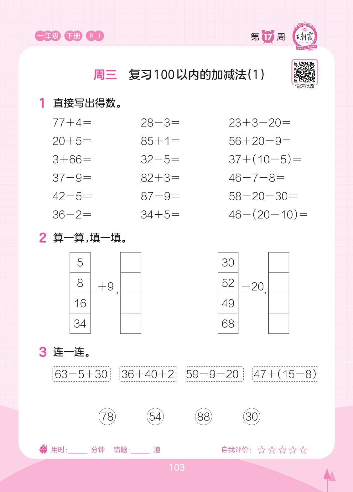 2023下册一年级数学人教版 第17周 周三