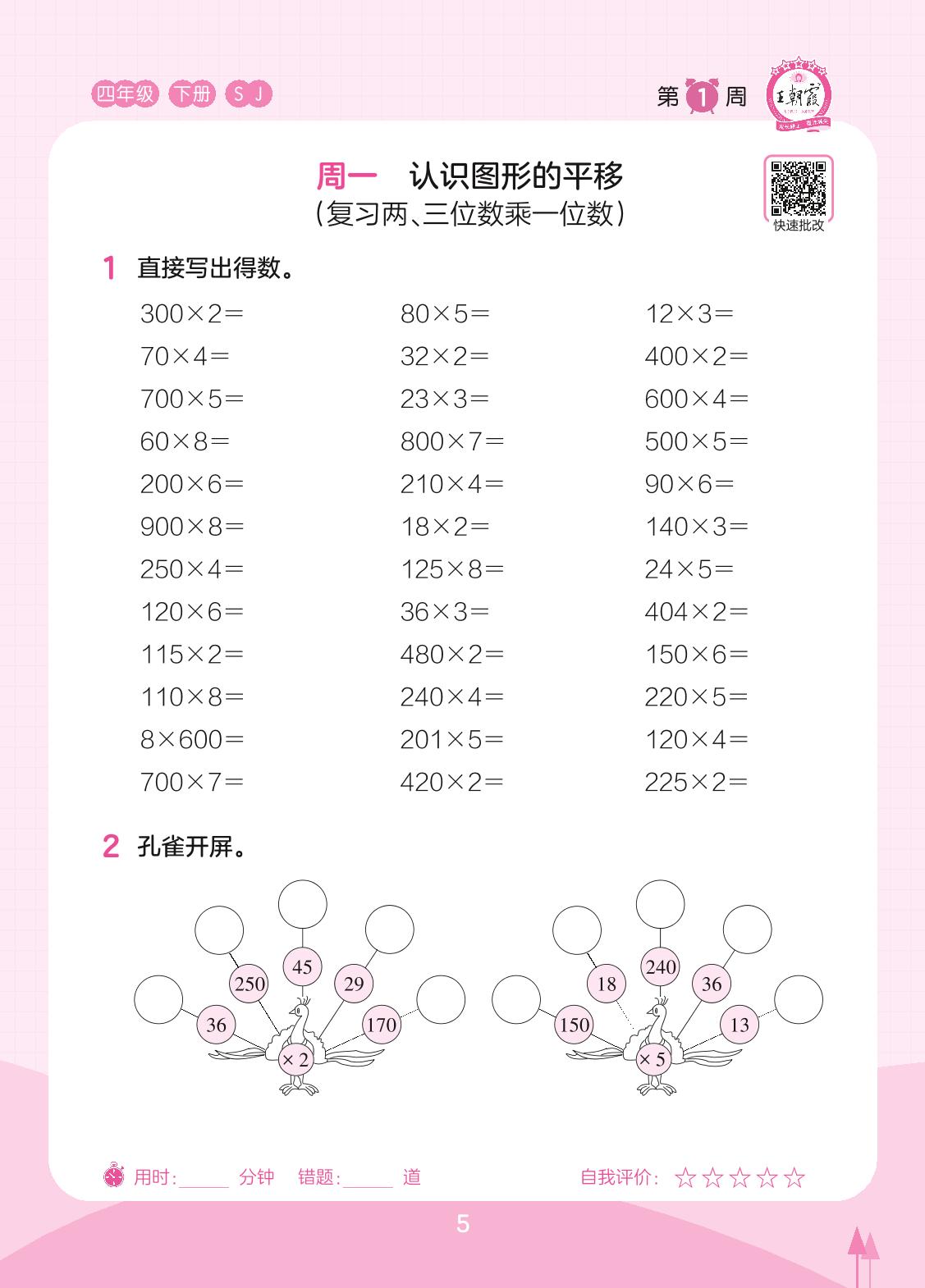 2023下册四年级数学苏教版 第1周 周一