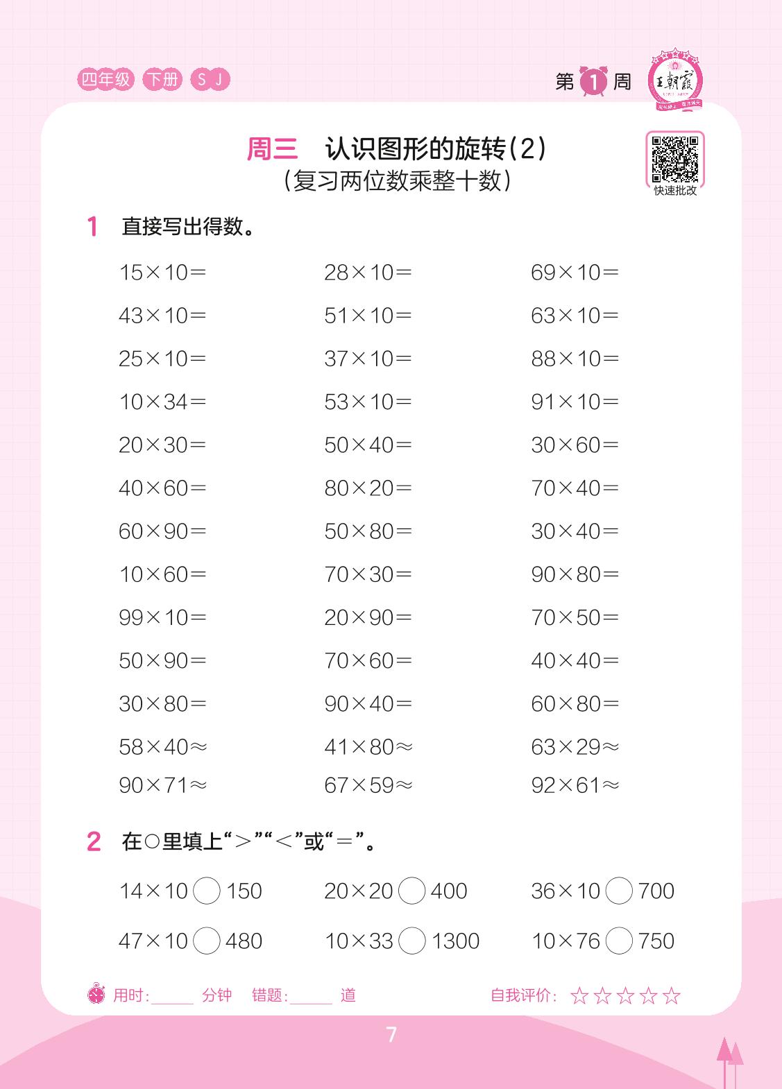 2023下册四年级数学苏教版 第1周 周三