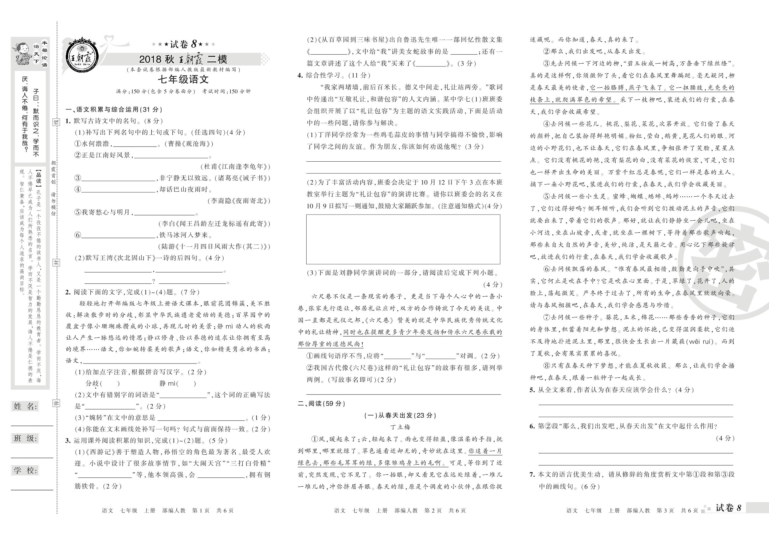 王朝霞期末模拟卷七年级上册语文(人教版)_R210802163337【8】