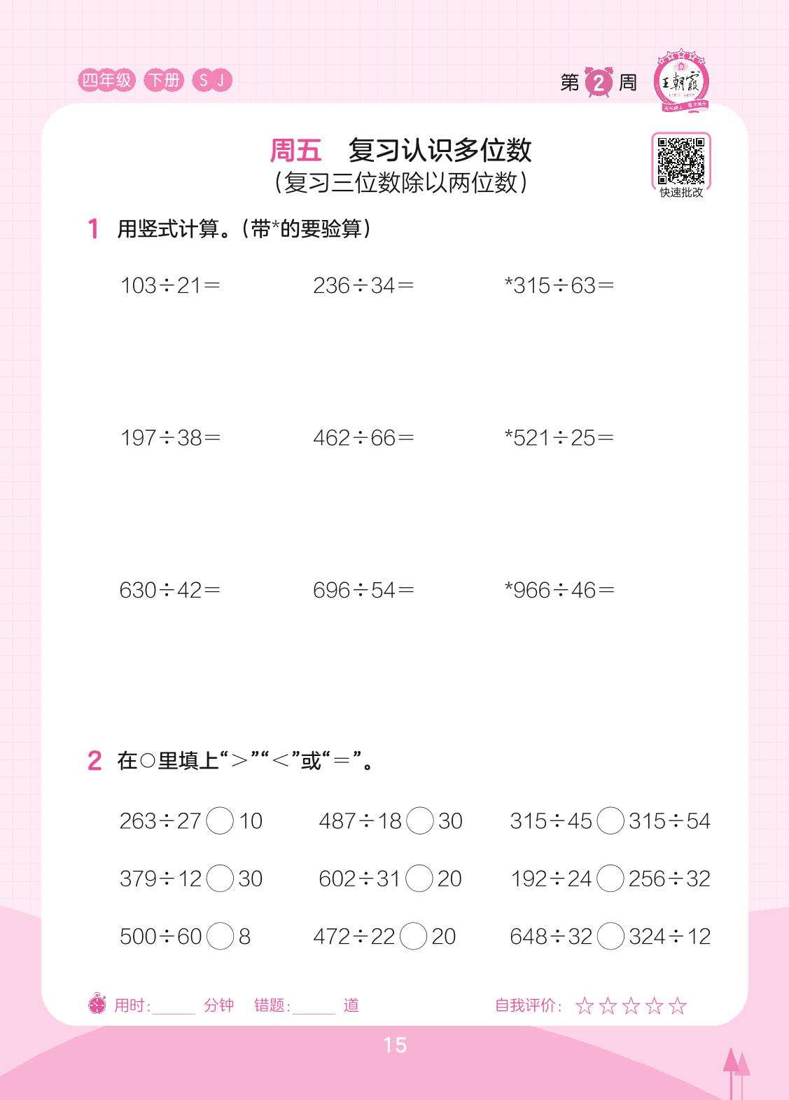 2023下册四年级数学苏教版 第2周 周五