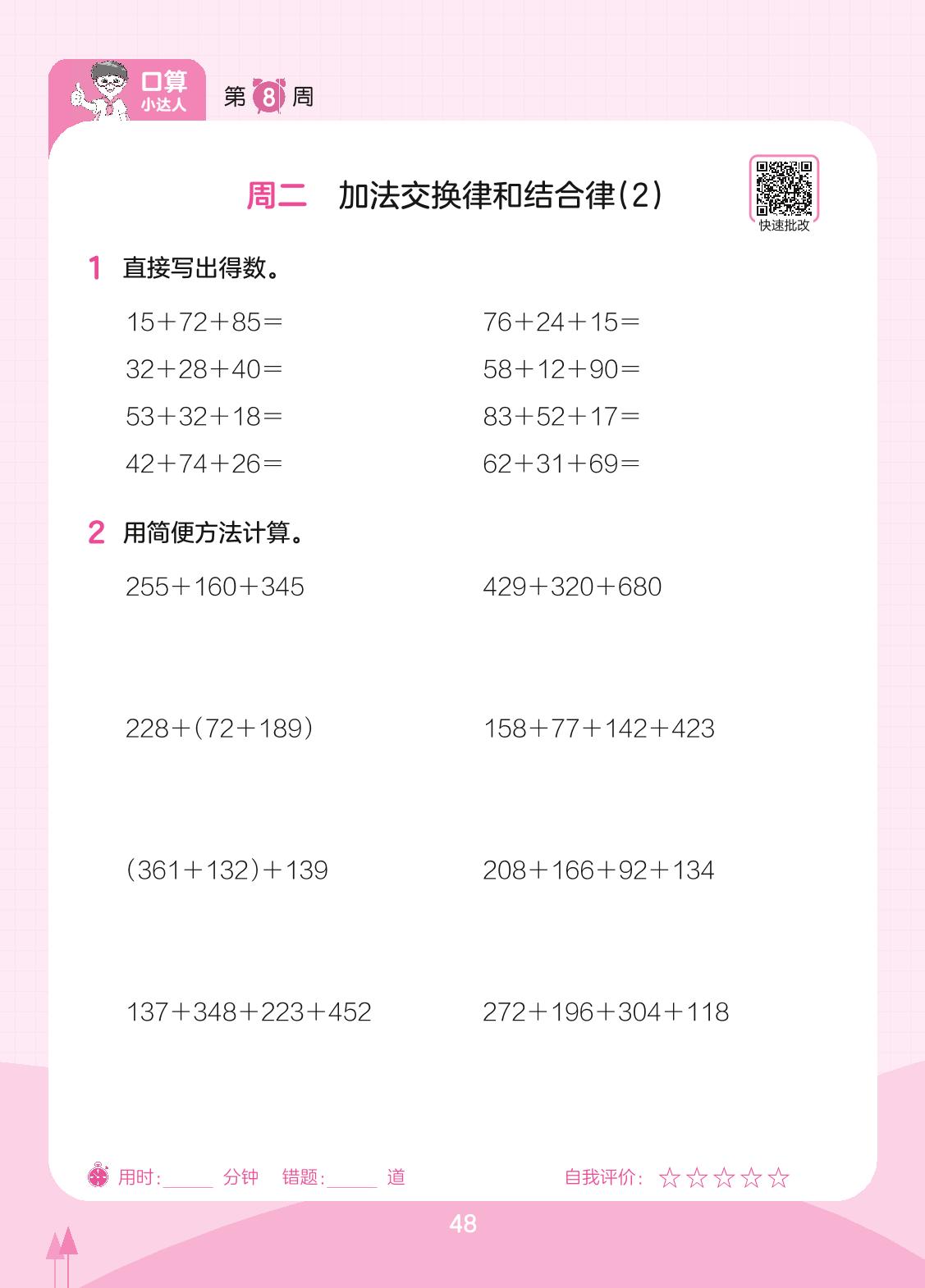 2023下册四年级数学苏教版 第8周 周二