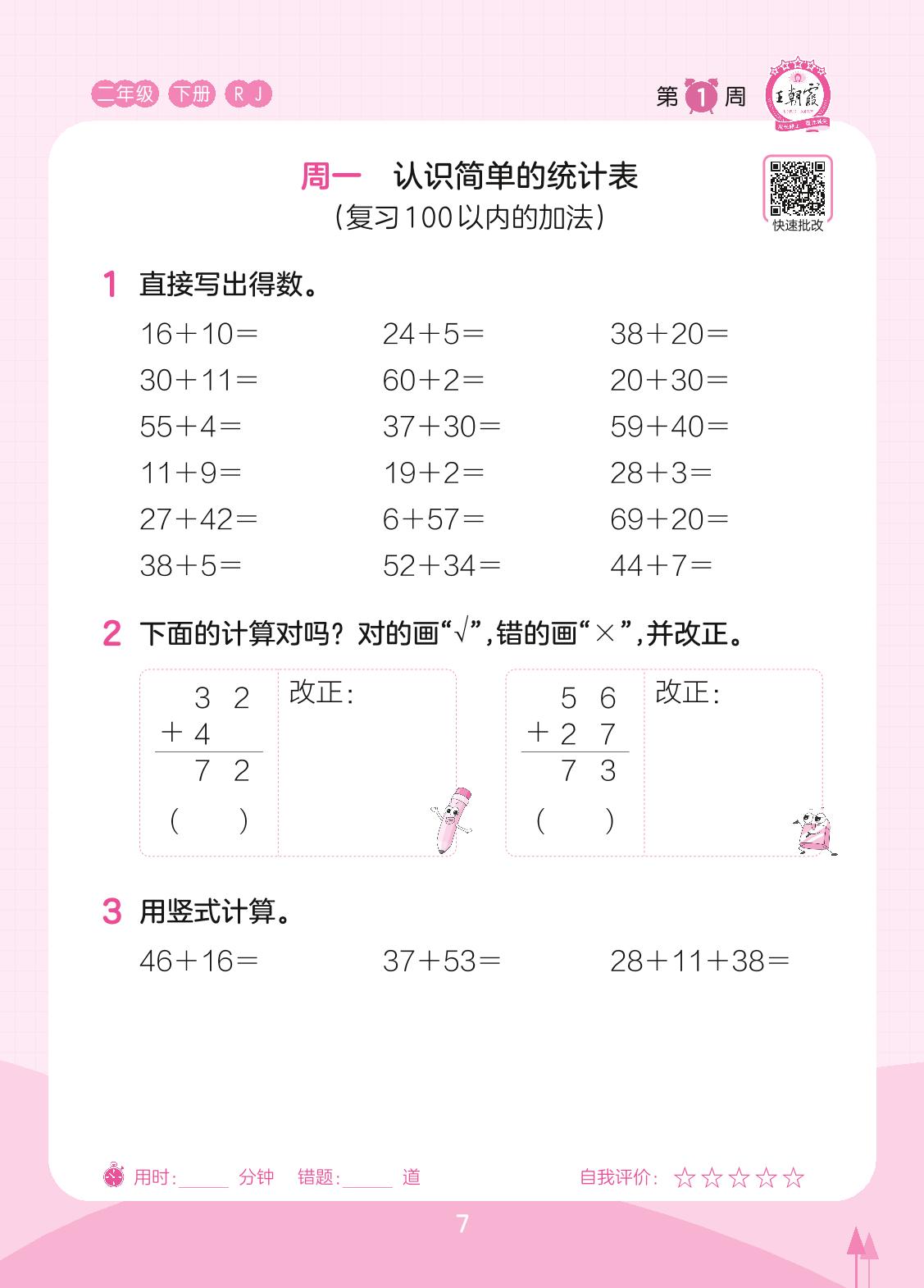 2023下册二年级数学人教版 第1周 周一