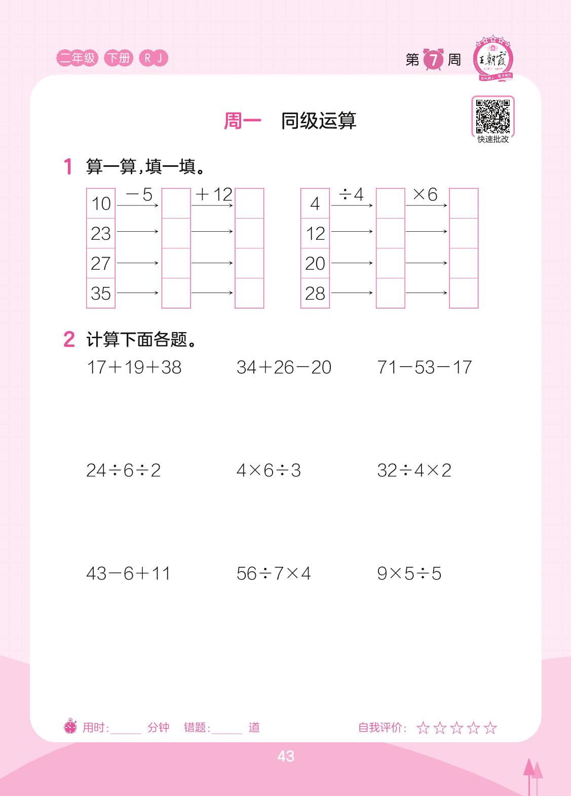 2023下册二年级数学人教版 第7周 周一