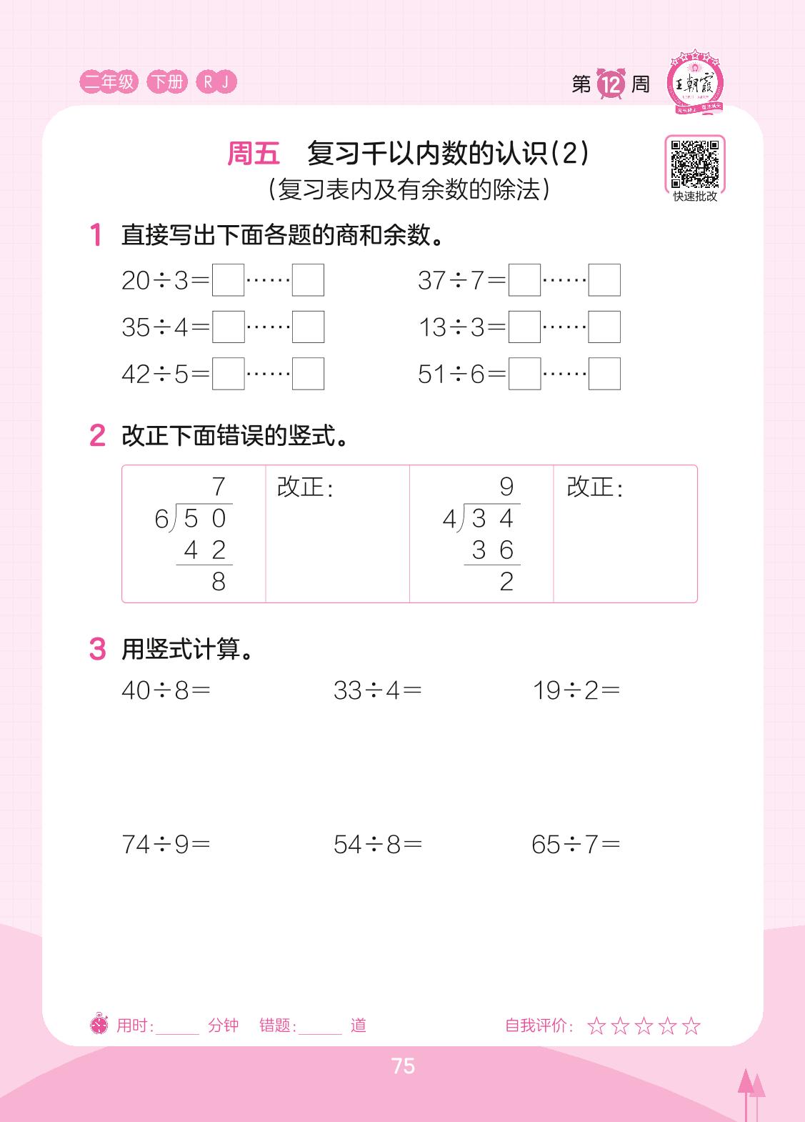 2023下册二年级数学人教版 第12周 周五