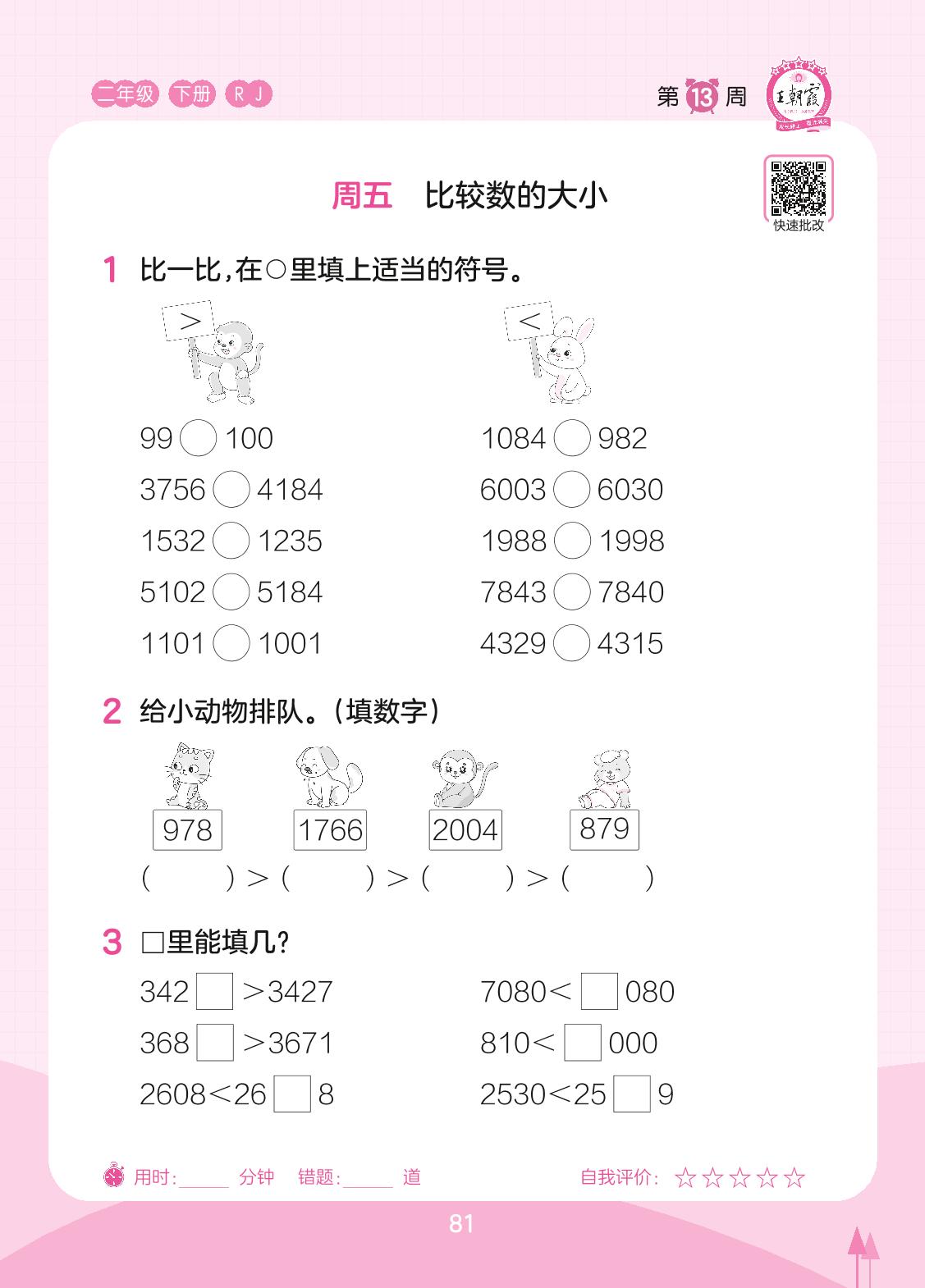2023下册二年级数学人教版 第13周 周五