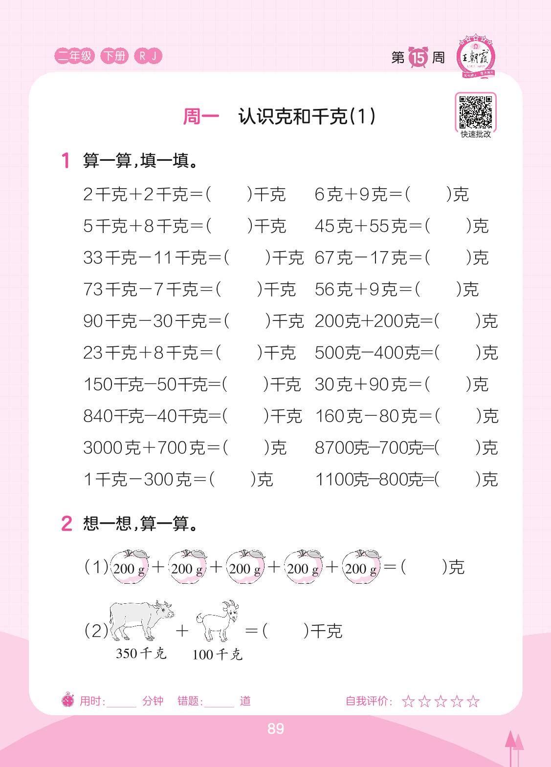 2023下册二年级数学人教版 第15周 周一