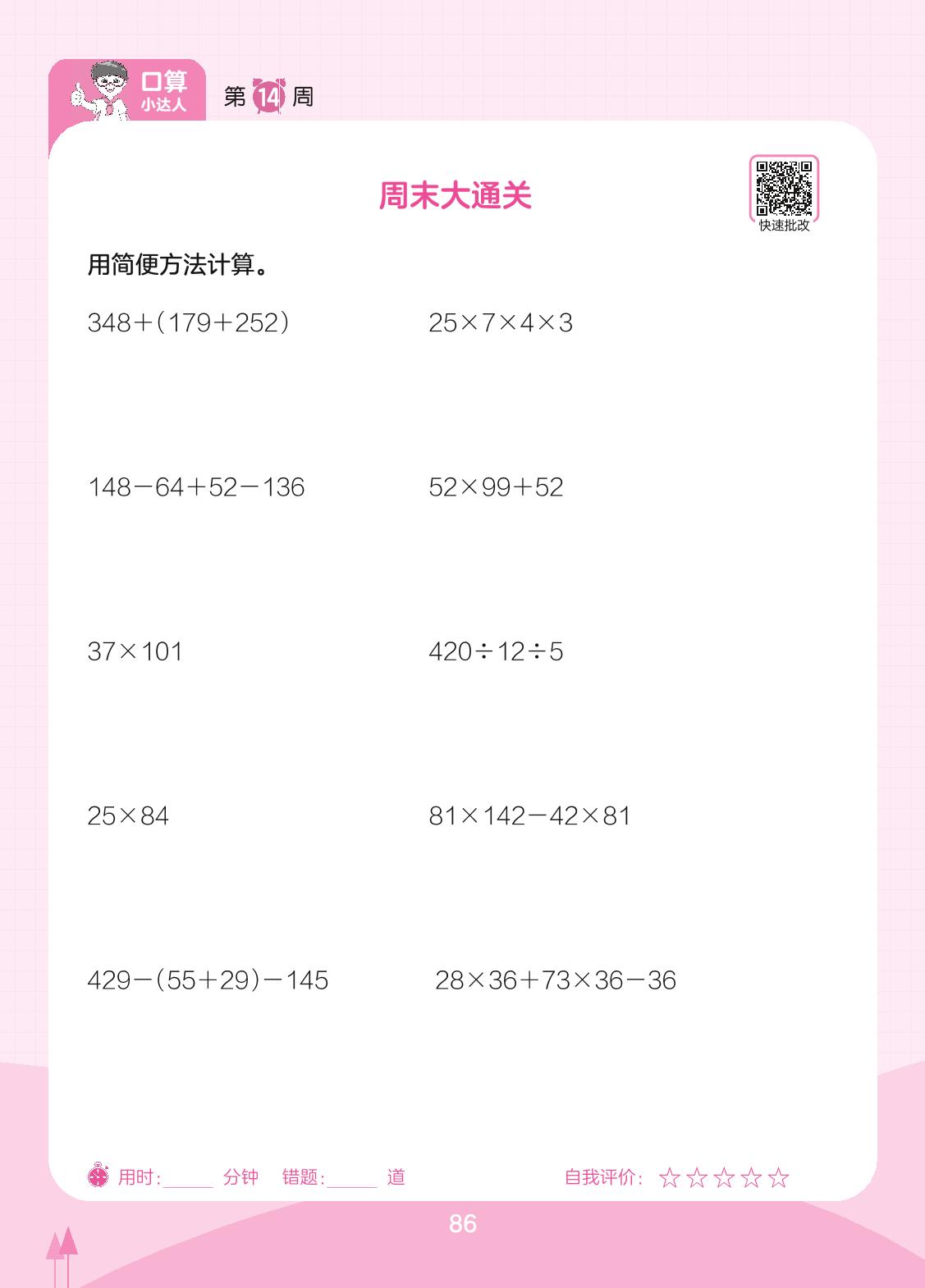 2023下册四年级数学苏教版 第14周 周末大通关