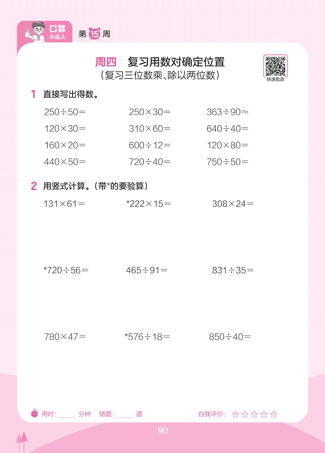 2023下册四年级数学苏教版 第15周 周四