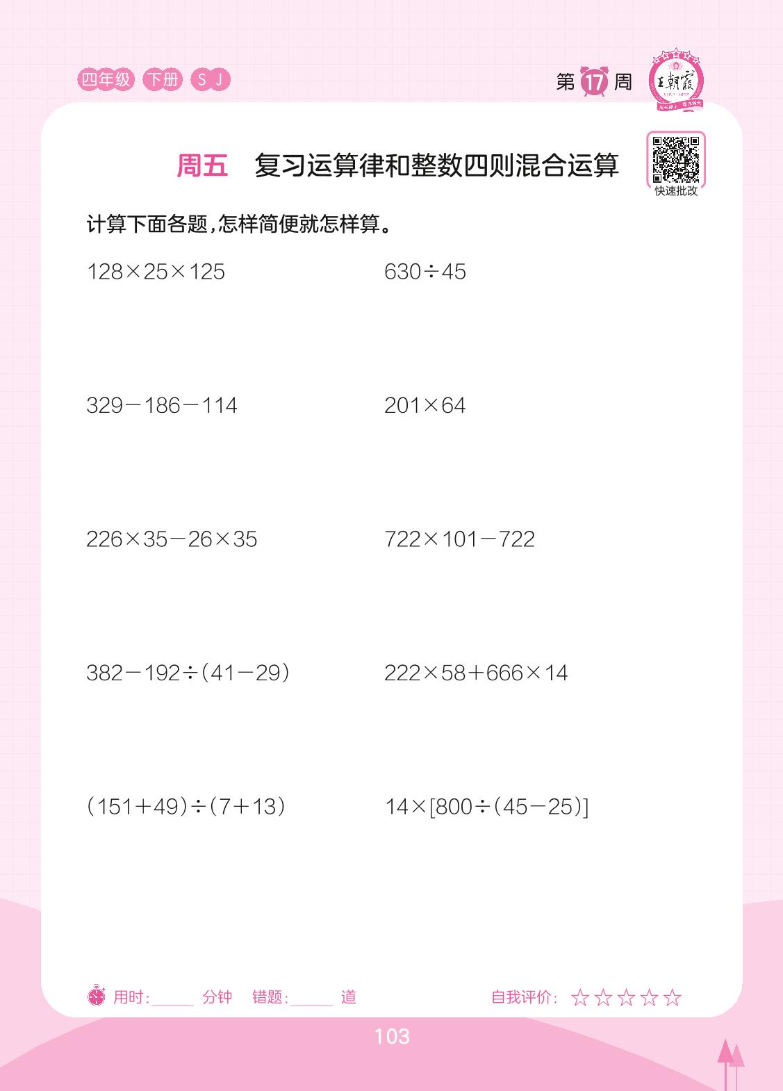 2023下册四年级数学苏教版 第17周 周五