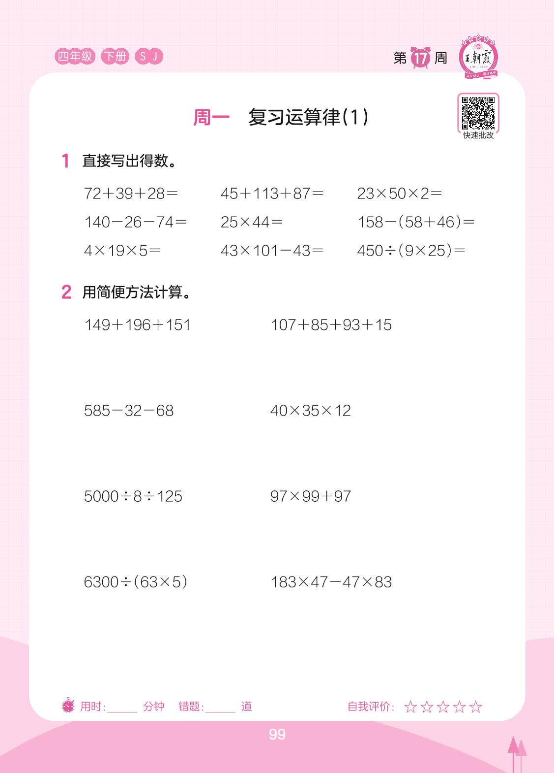 2023下册四年级数学苏教版 第17周 周一