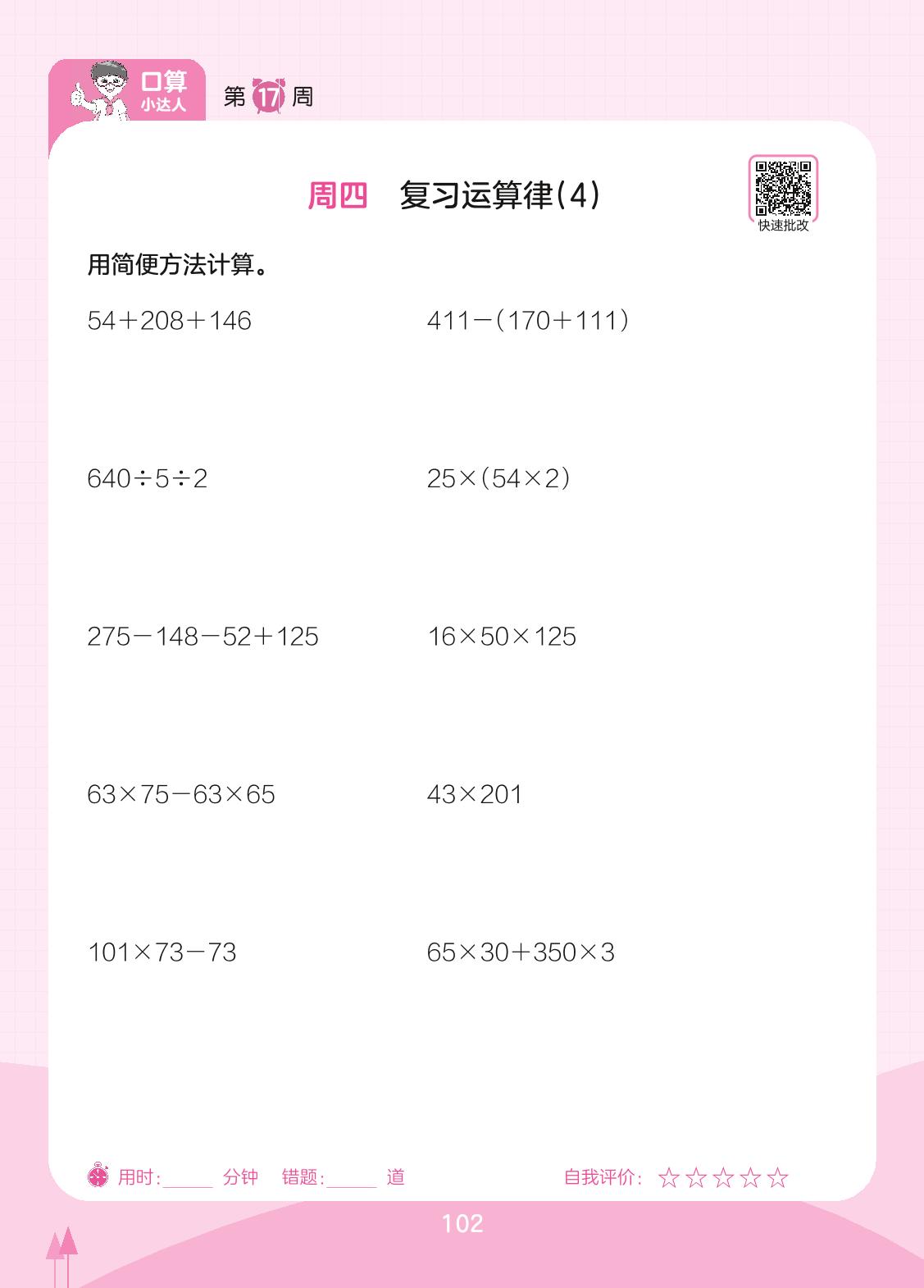 2023下册四年级数学苏教版 第17周 周四