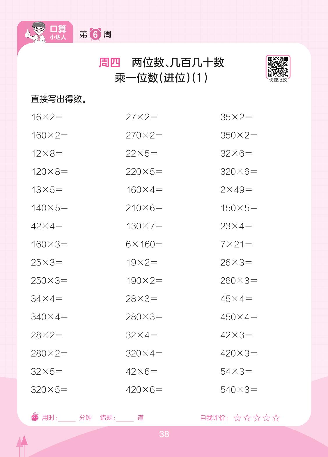 2023下册三年级数学人教版 第6周 周四