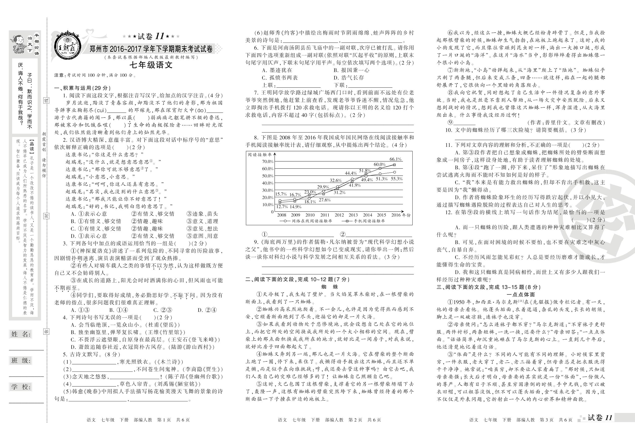 2016-2017学年第二学期郑州市七年级语文试卷(人教版)【11】