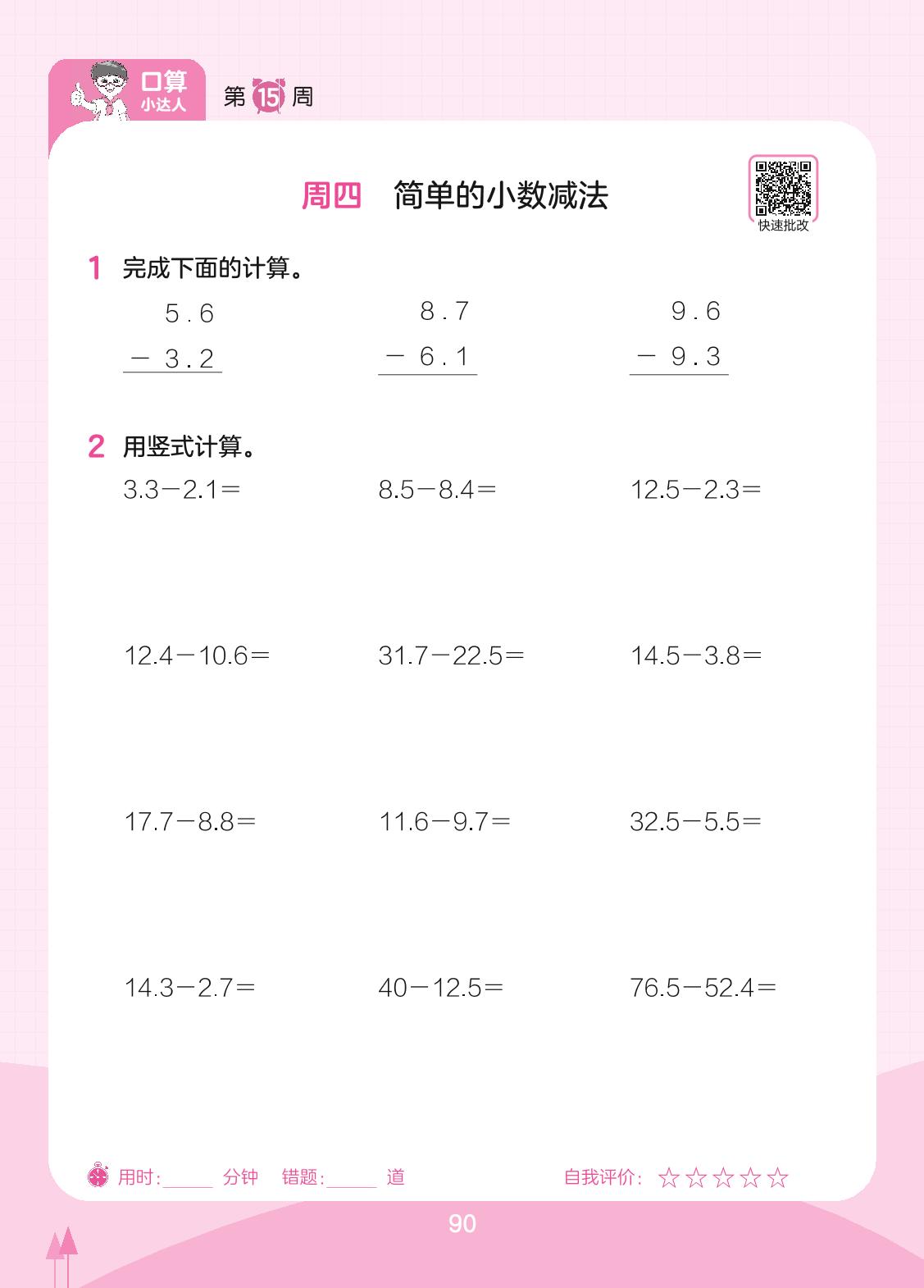 2023下册三年级数学人教版 第15周 周四