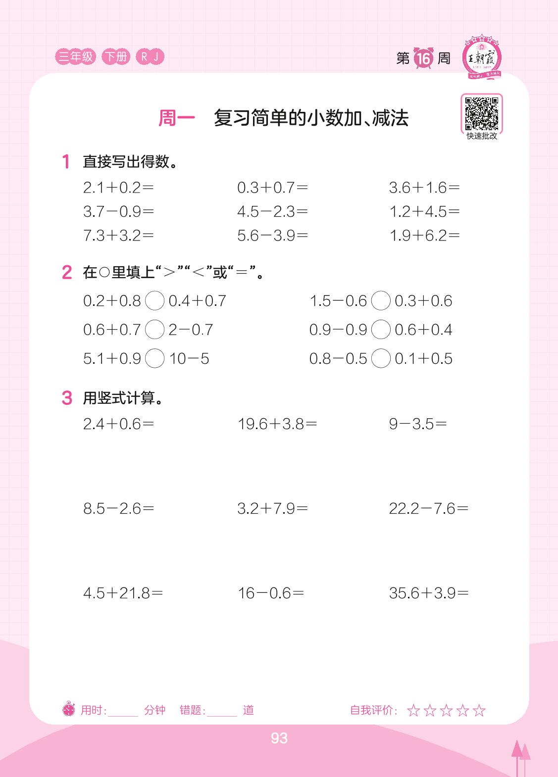 2023下册三年级数学人教版 第16周 周一