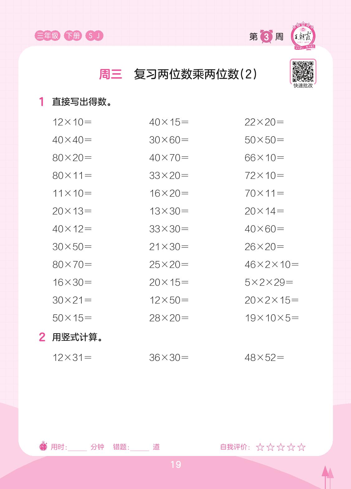 2023下册三年级数学苏教版 第3周 周三