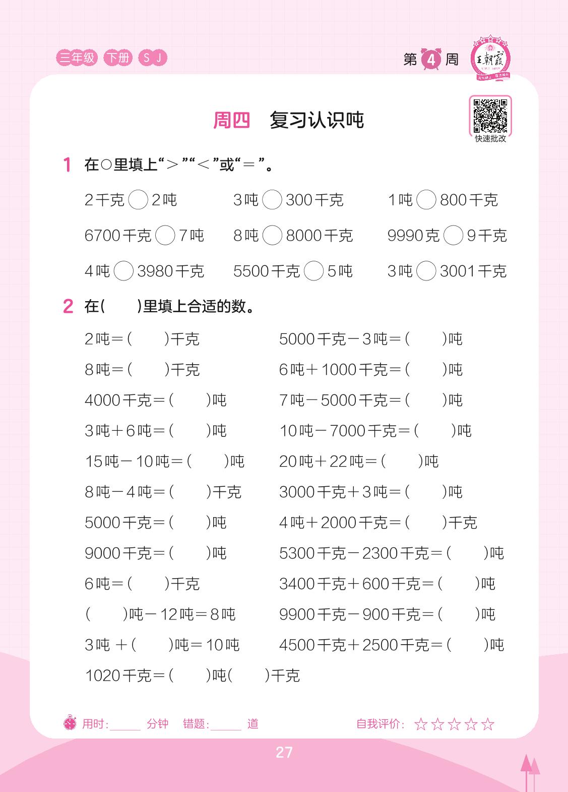 三年级数学苏教版下册专项卷