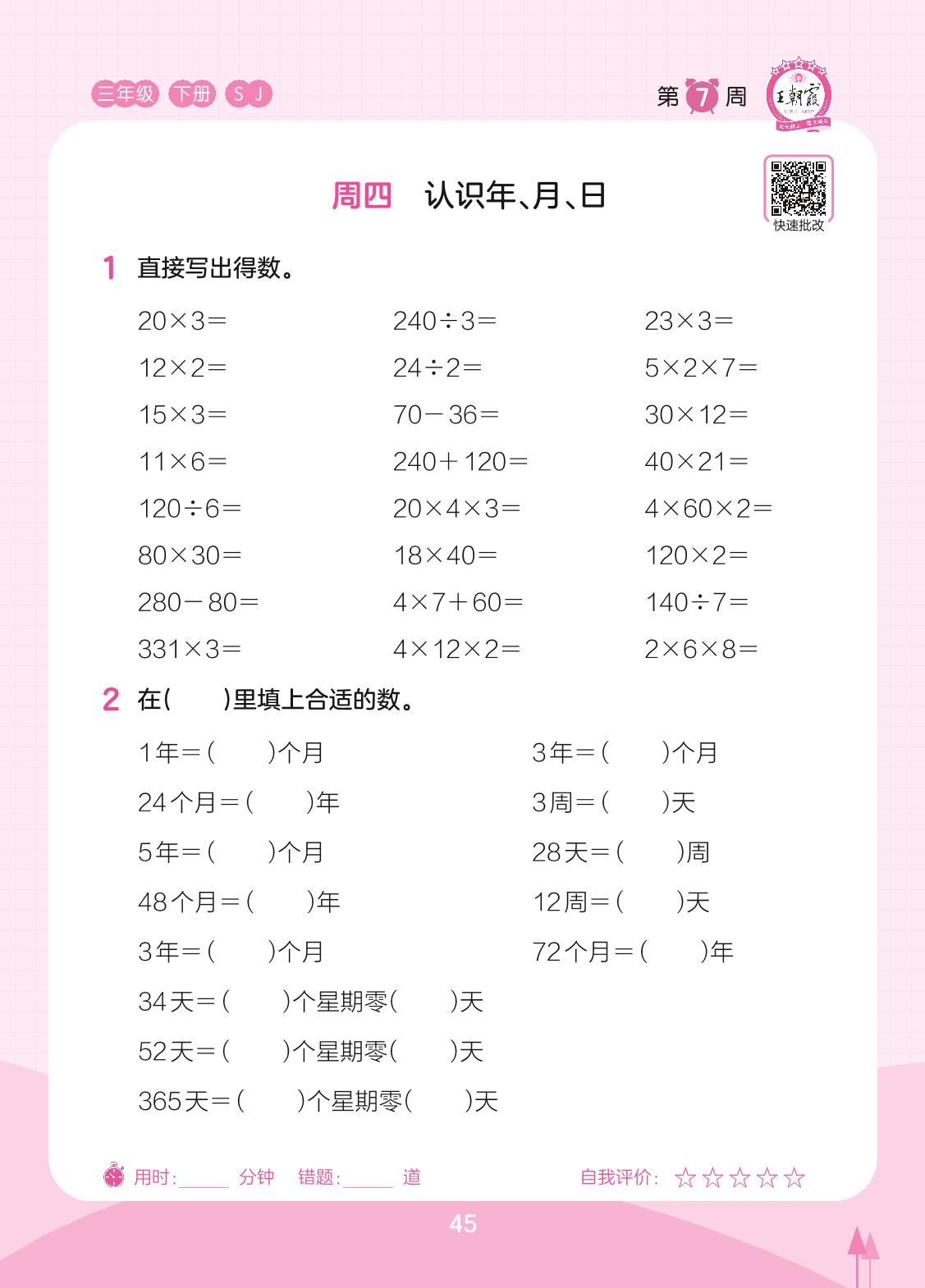 2023下册三年级数学苏教版 第7周 周四