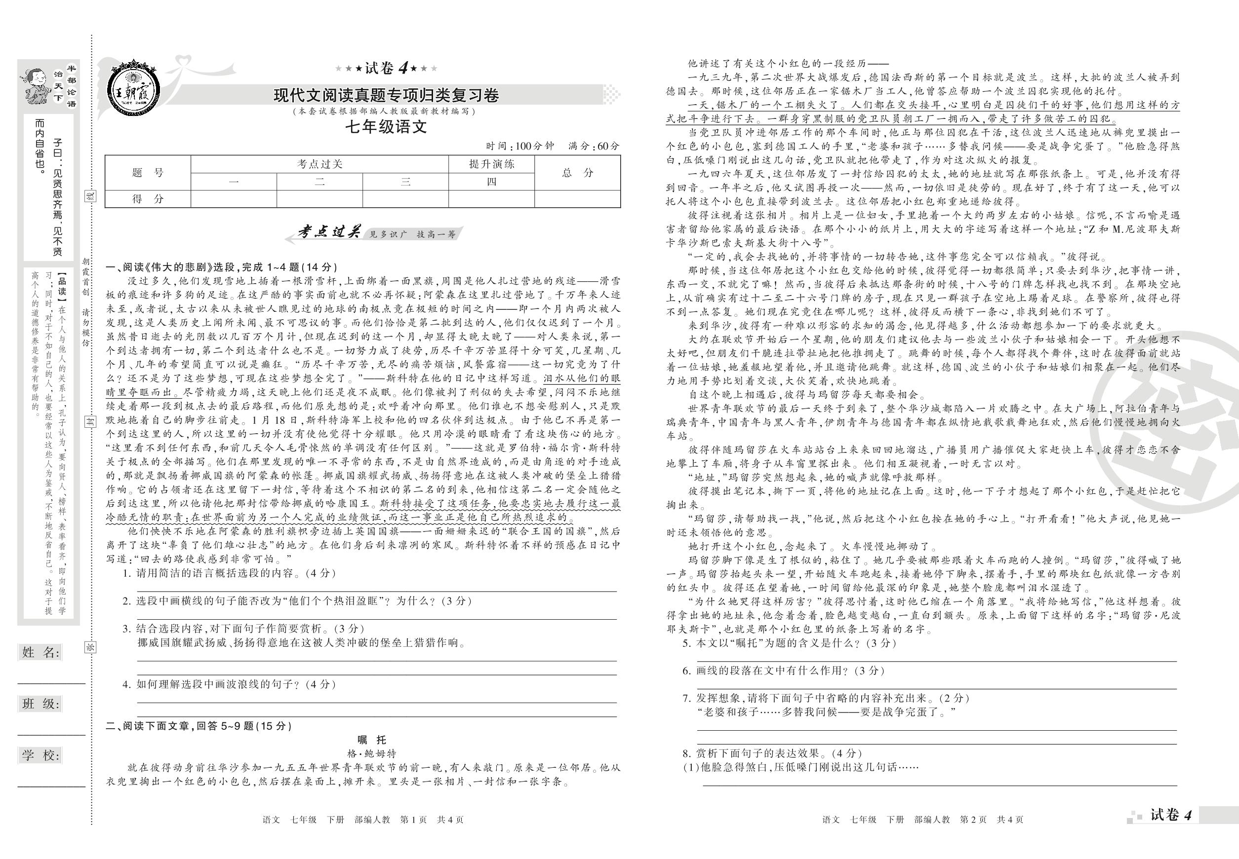 七年级语文人教版下册专项卷
