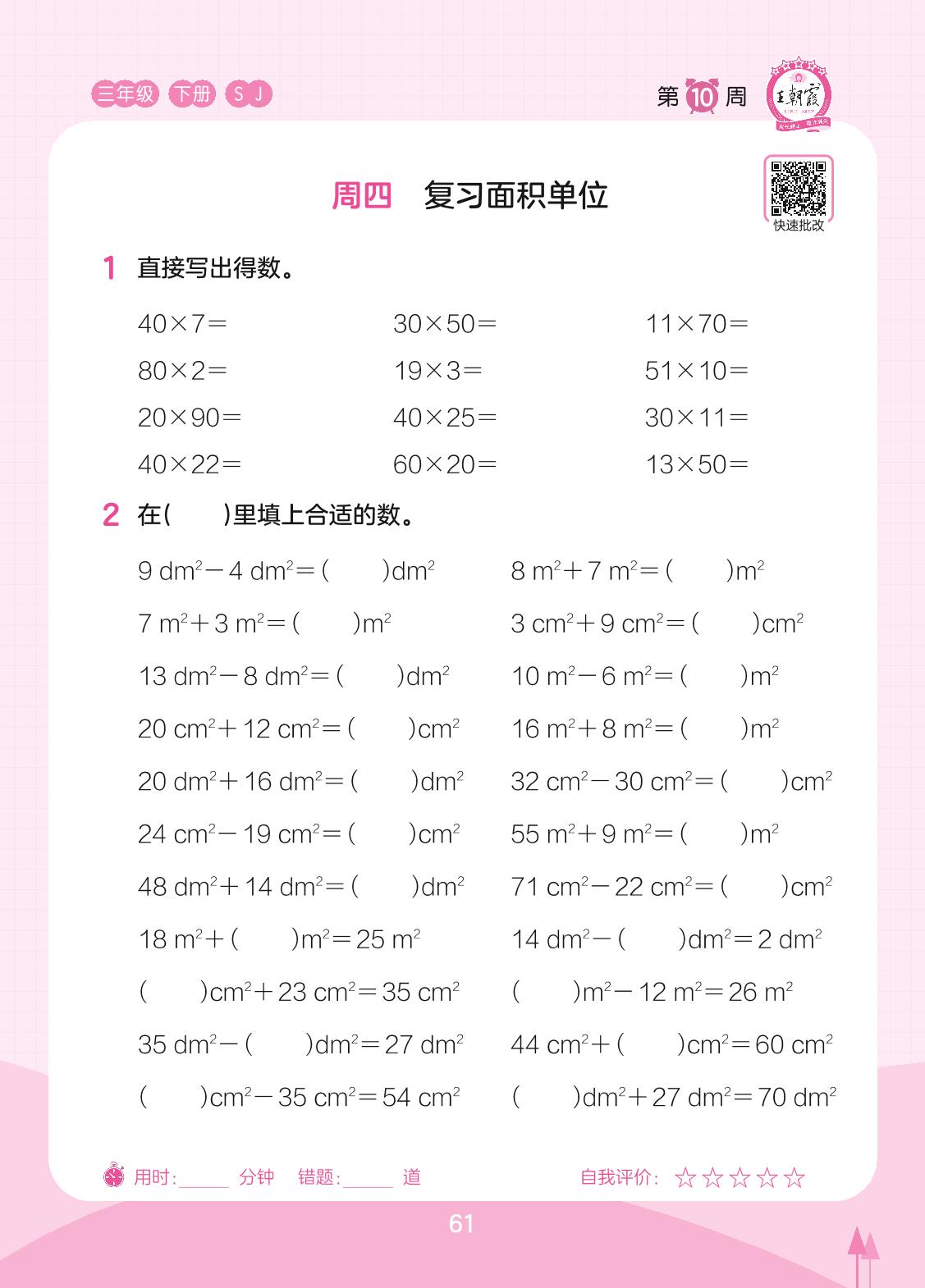 2023下册三年级数学苏教版 第10周 周四
