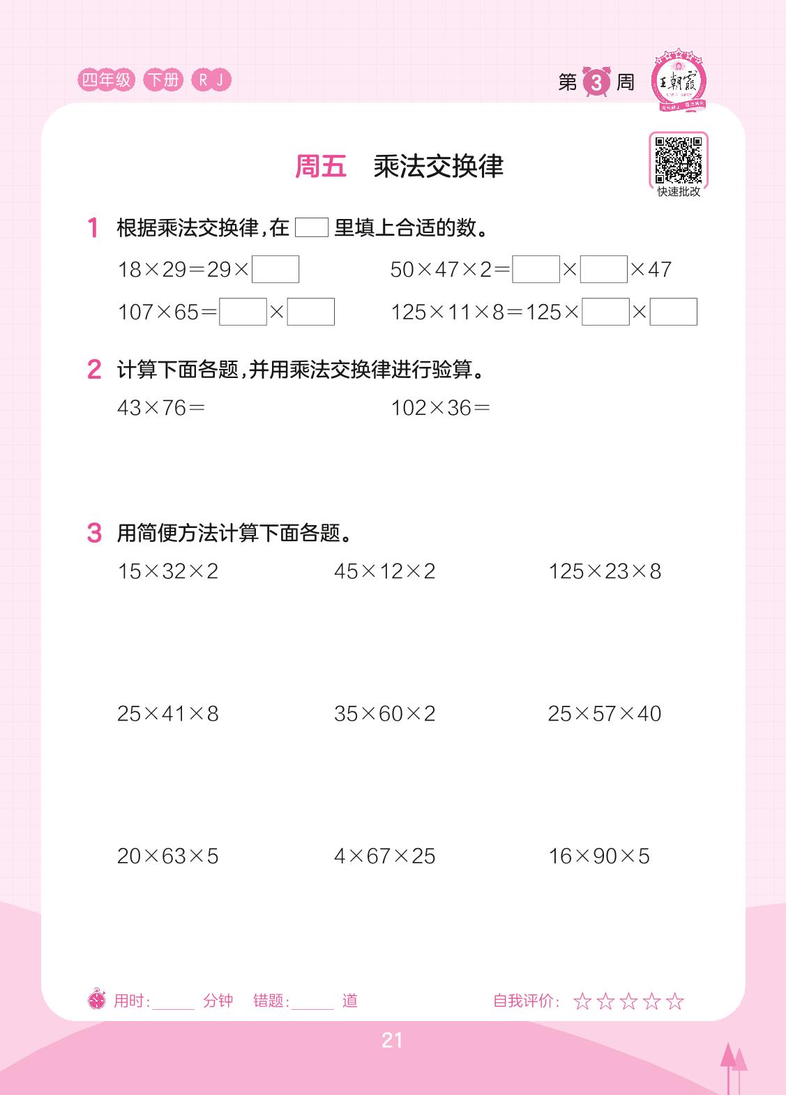 2023下册四年级数学人教版 第3周 周五