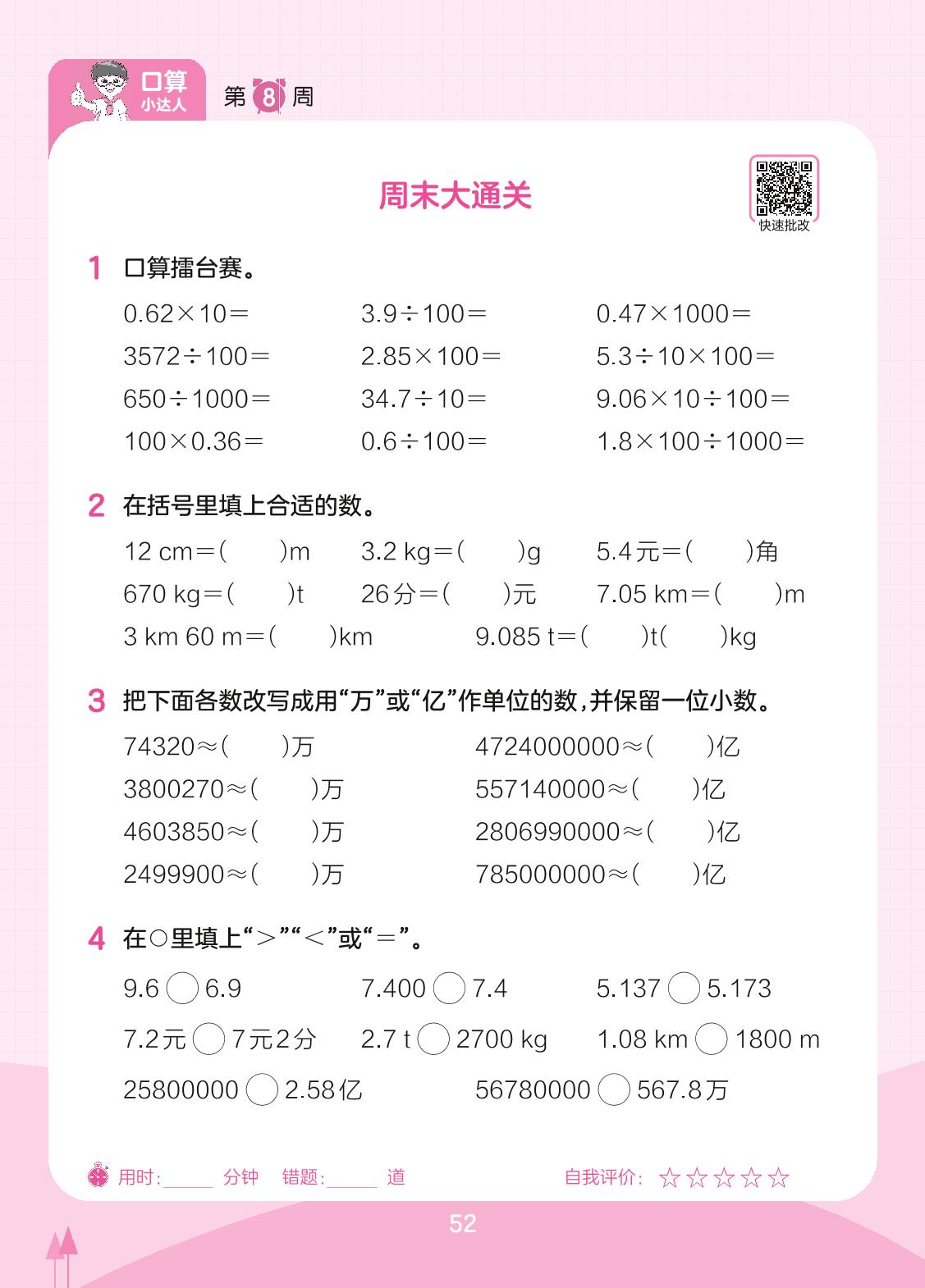 2023下册四年级数学人教版 第8周 周末大通关