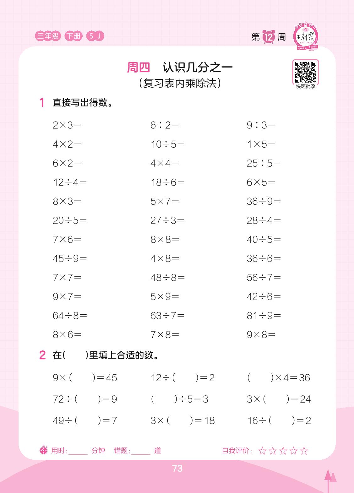 2023下册三年级数学苏教版 第12周 周四
