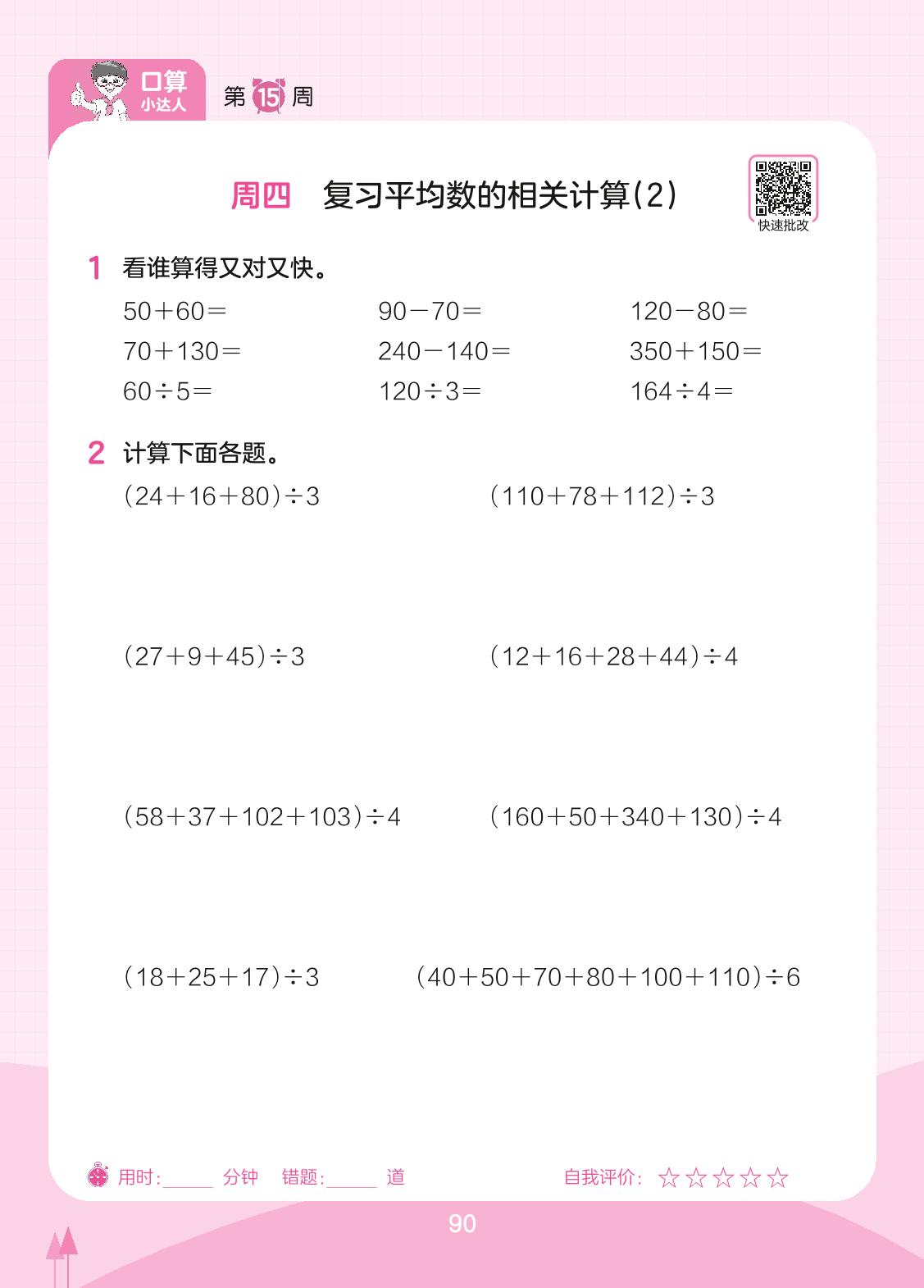 2023下册四年级数学人教版 第15周 周四