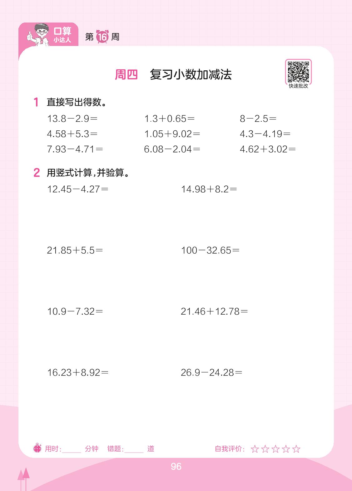 2023下册四年级数学人教版 第16周 周四