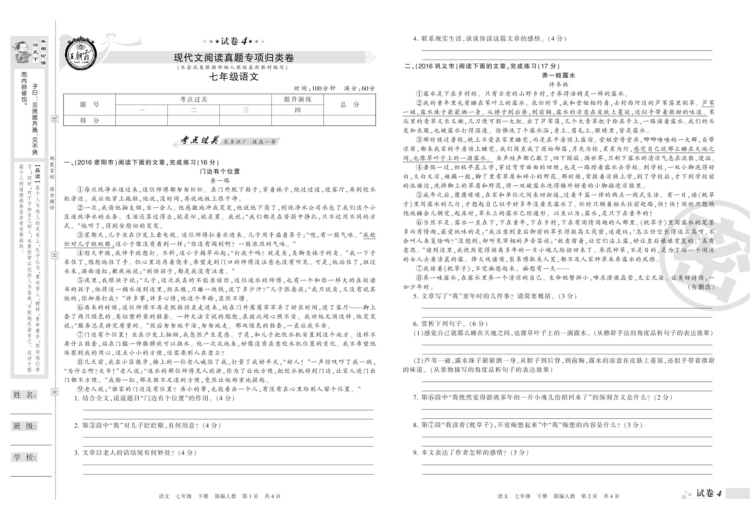 王朝霞期末专项卷——现代文阅读真题专项归类卷七年级下册语文(人教版)_R210802164140【4】