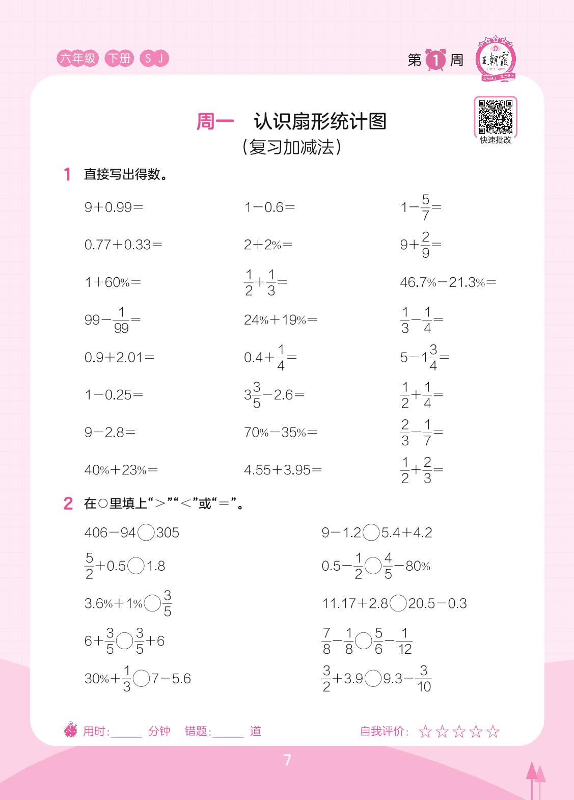 2023下册六年级数学苏教版 第1周 周一