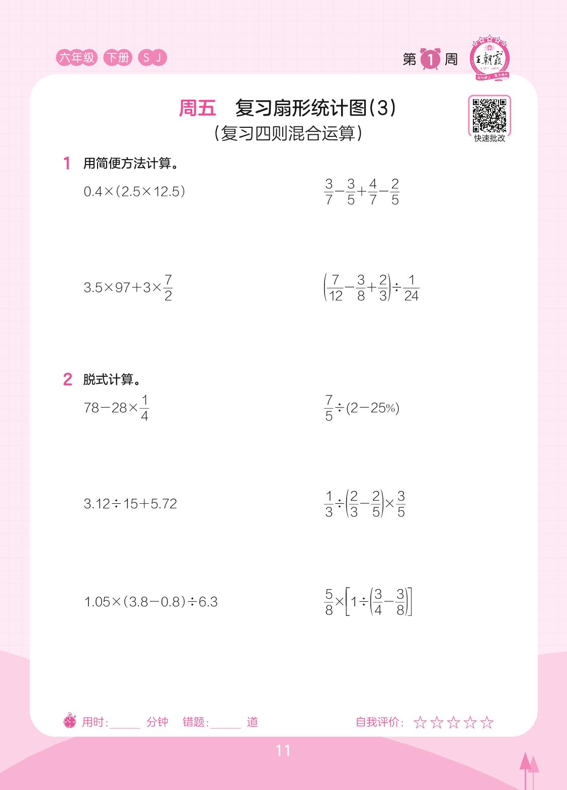 2023下册六年级数学苏教版 第1周 周五
