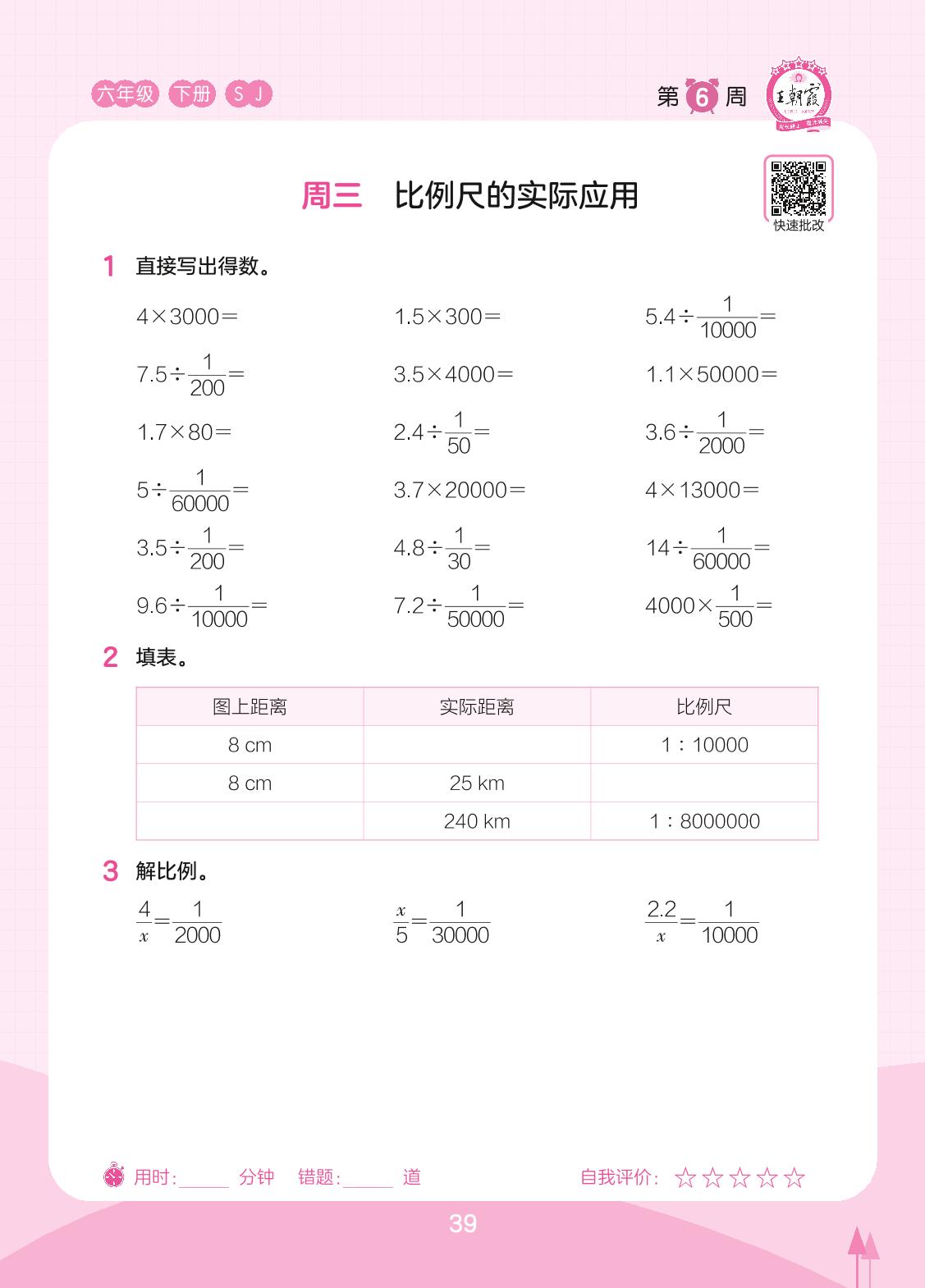 2023下册六年级数学苏教版 第6周 周三