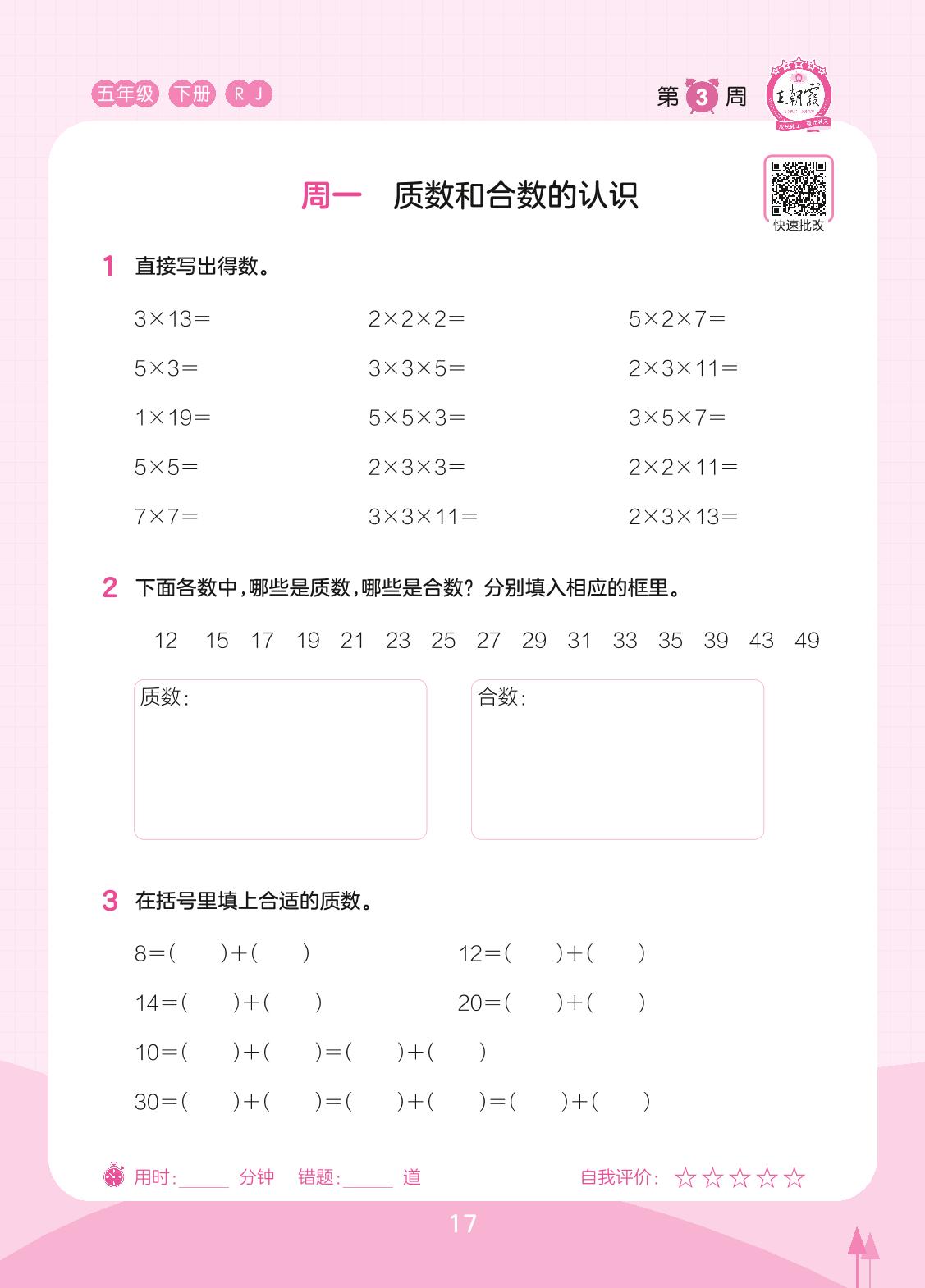2023下册五年级数学人教版 第3周 周一