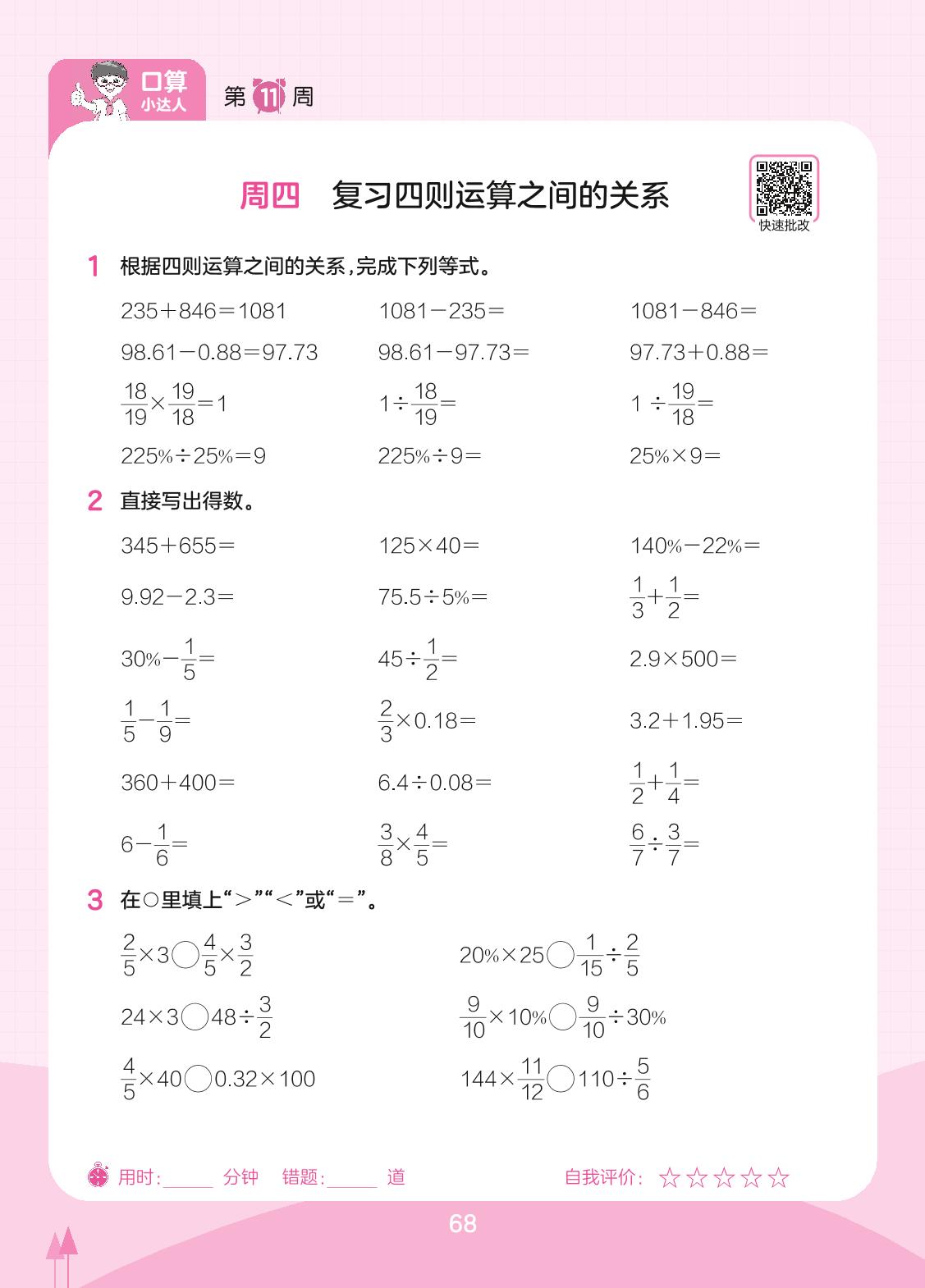 2023下册六年级数学苏教版 第11周 周四