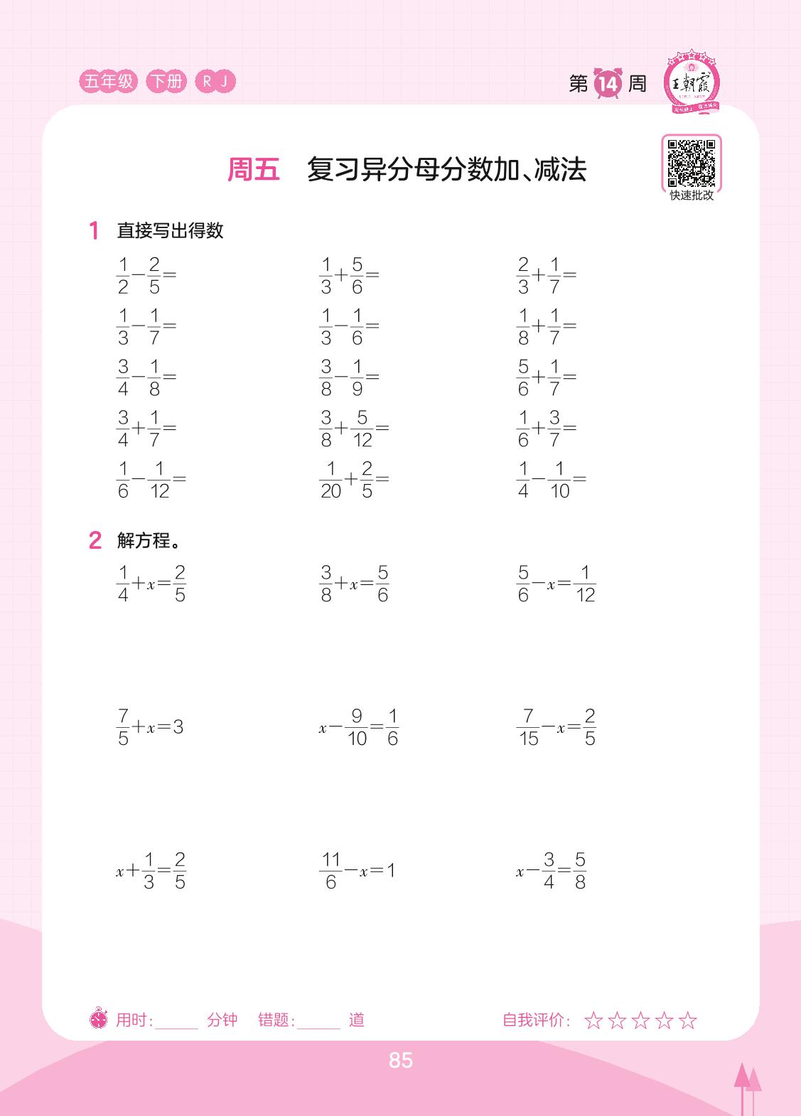 2023下册五年级数学人教版 第14周 周五