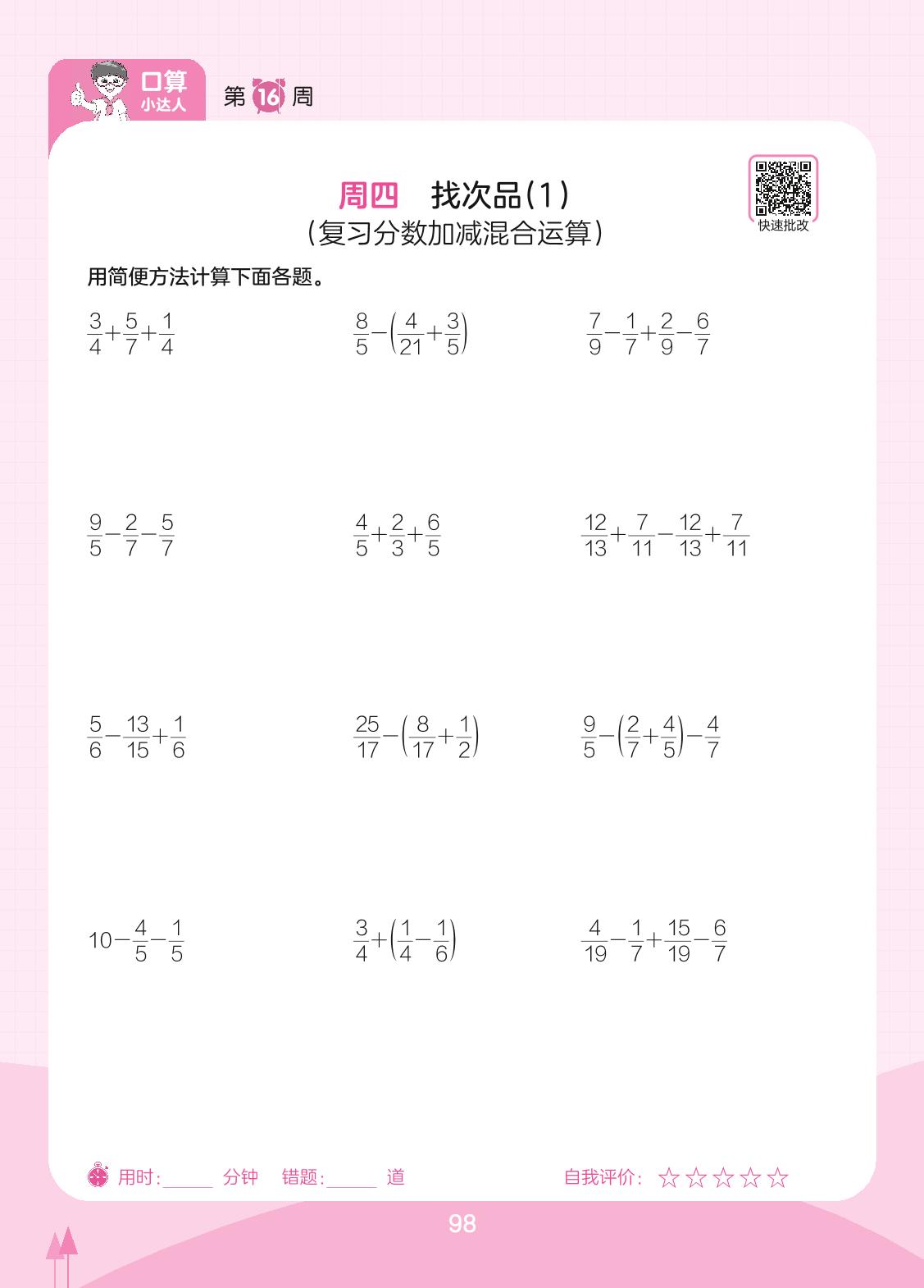 2023下册五年级数学人教版 第16周 周四